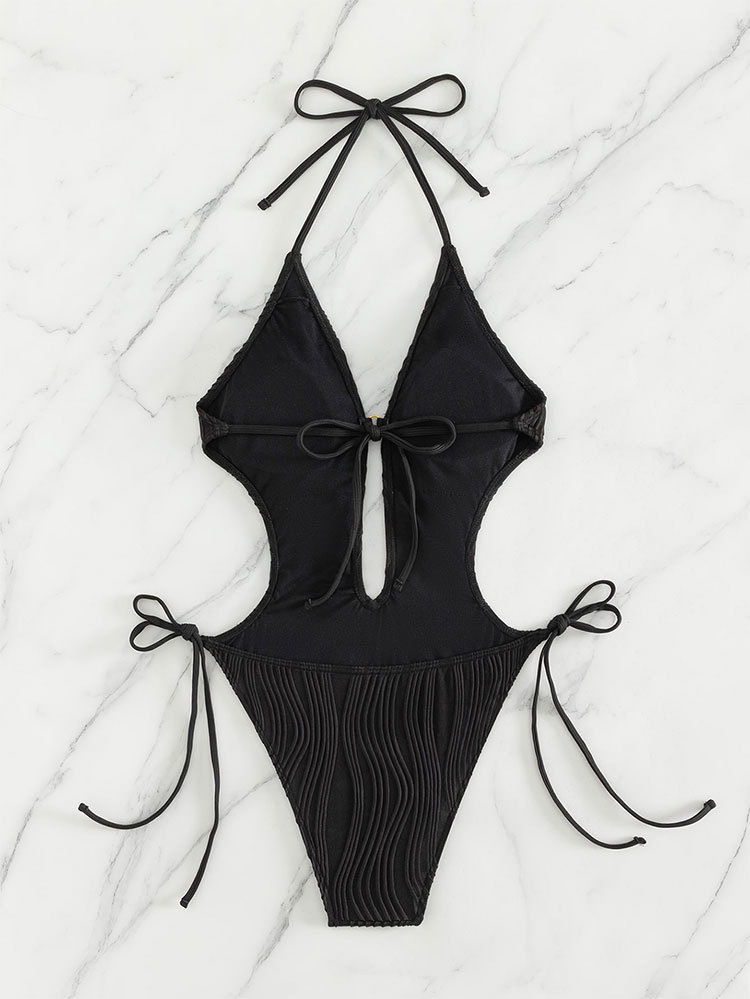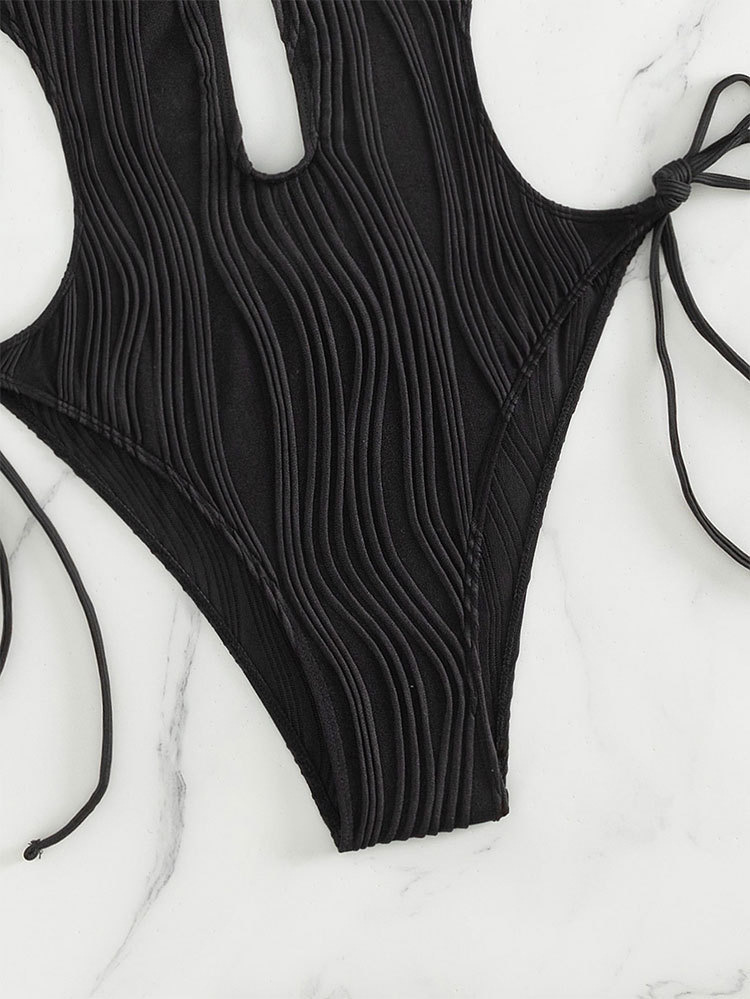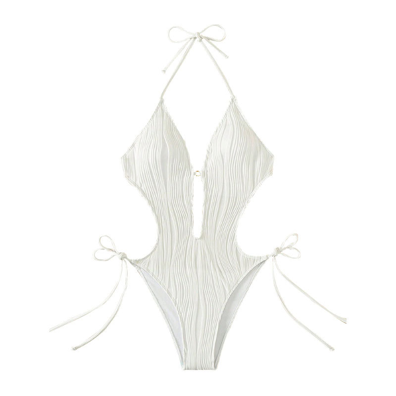 아마존 크로스보더 2025 신상 유럽 및 미국 스타일 원피스 수영복 여성용 단색 끈 묶음 섹시 하이웨이스트 비키니 수영복스토어 가기