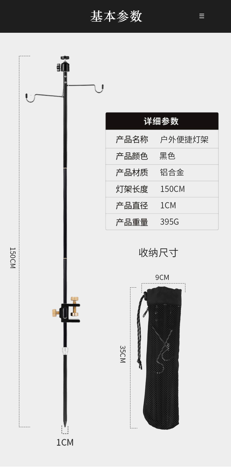 휴대용 라이트 스탠드 야외 캠핑 조명 라이트 폴 접이식 알루미늄 합금 캠핑 Led 라이트 브래킷 캠핑 교수형 조명