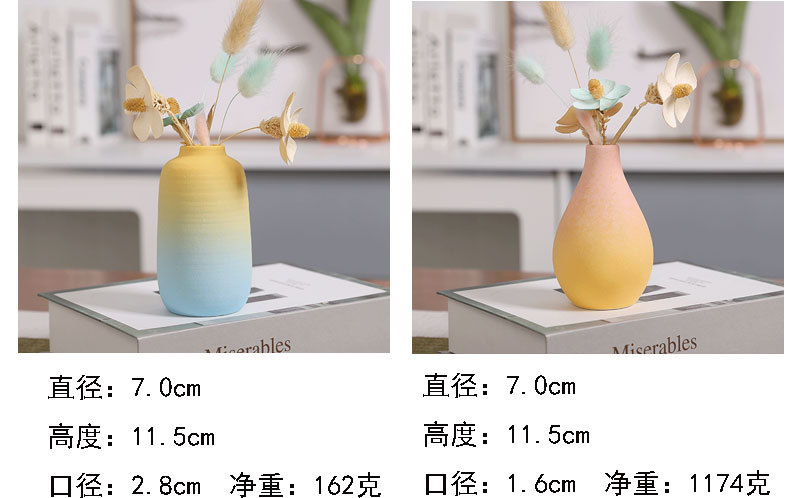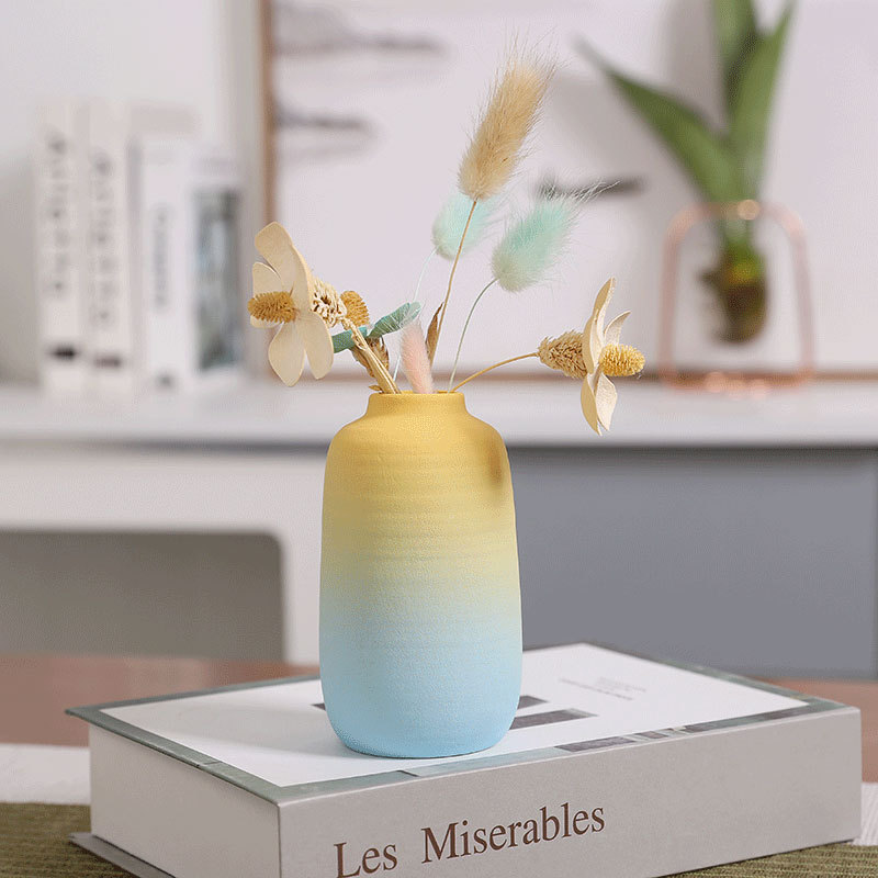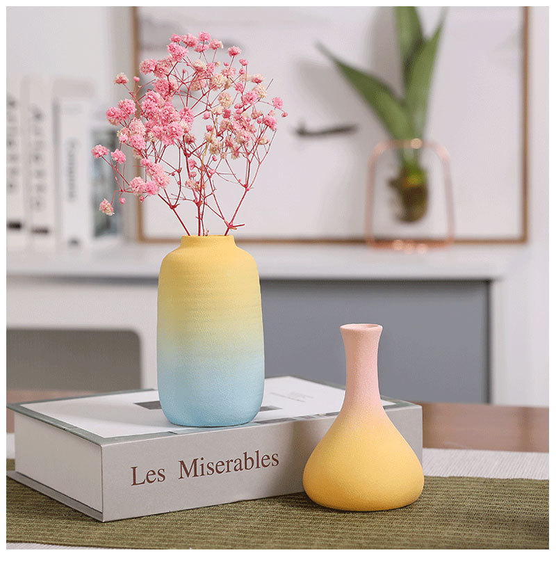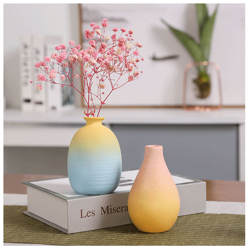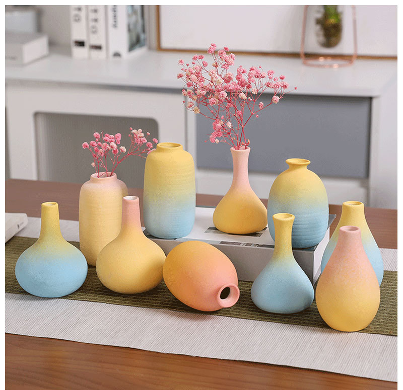 간단한 세라믹 작은 꽃병 그라디언트 신선한 젖빛 데스크탑 말린 꽃병 장식 장식품 북유럽 장식품스토어 가기