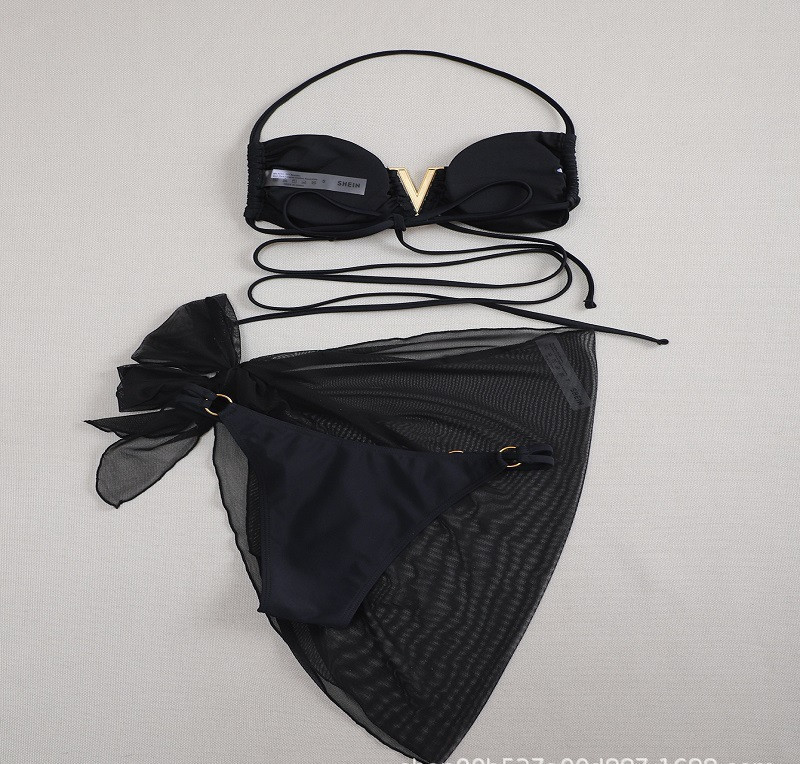 유럽과 미국 대외 무역 AliExpress 크로스 보더 비키니 2023 New V 단색 스트랩 섹시한 쓰리피스 수영복스토어 가기
