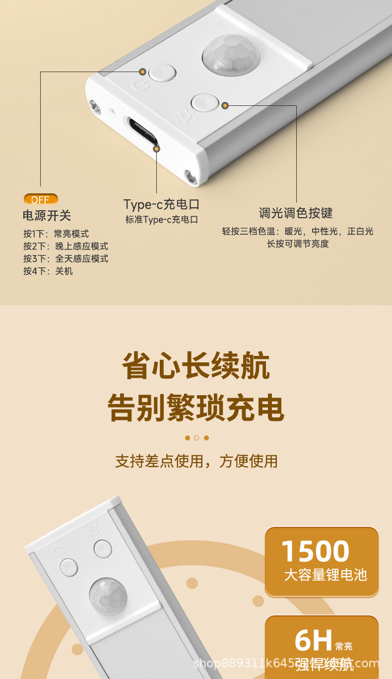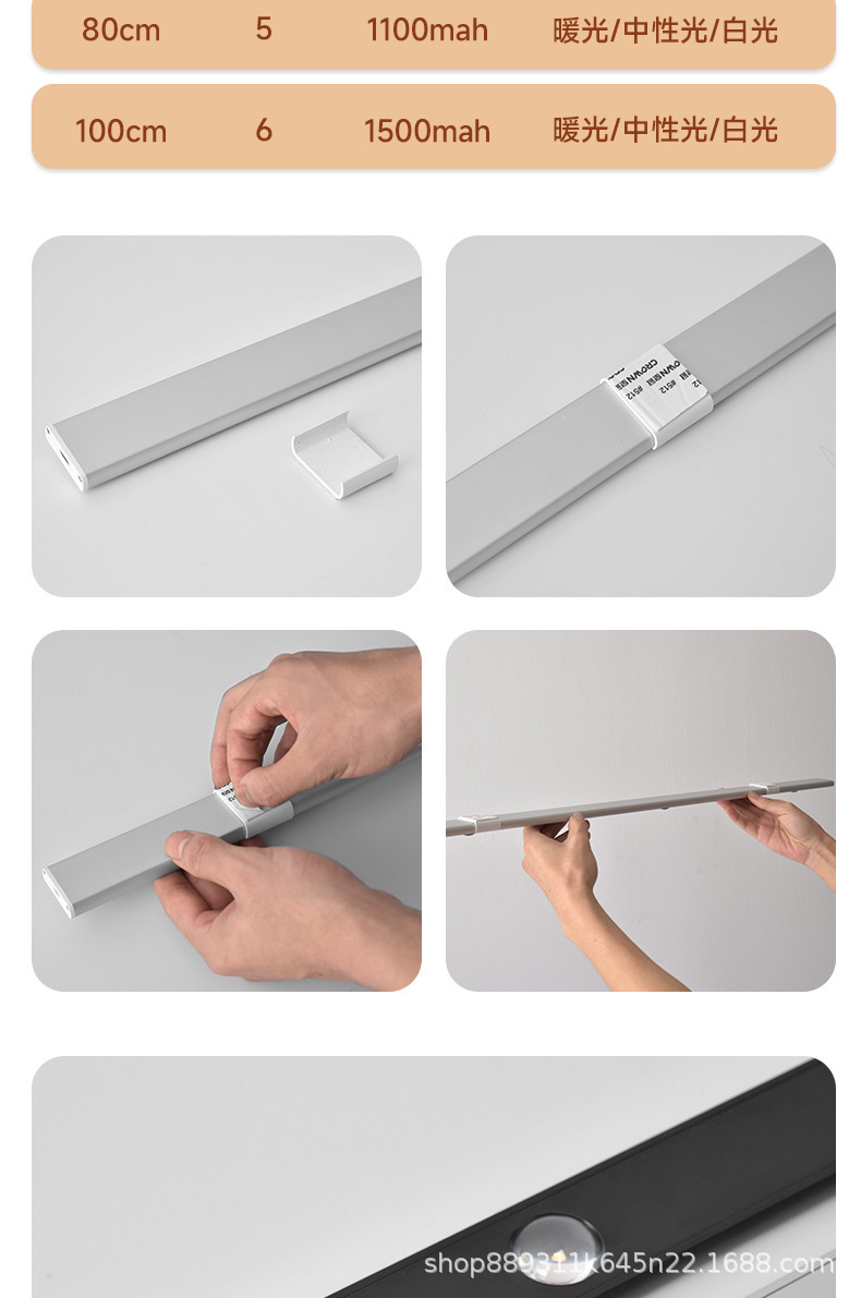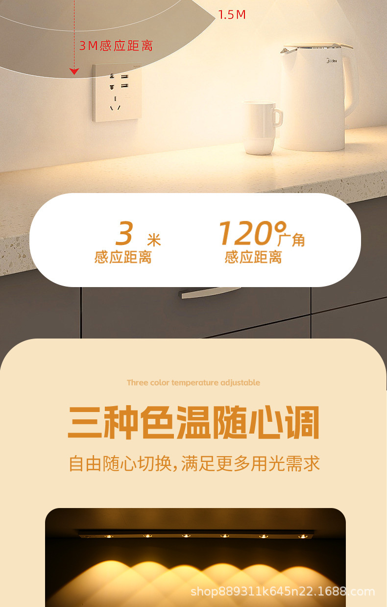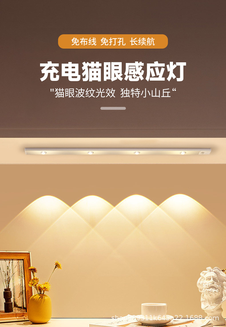 국경을 넘는 스마트 LED 인체 감지등 초박형 캣아이 힐 라이트 스트립 충전식 자가 접착 와인 캐비닛 조명 스트립