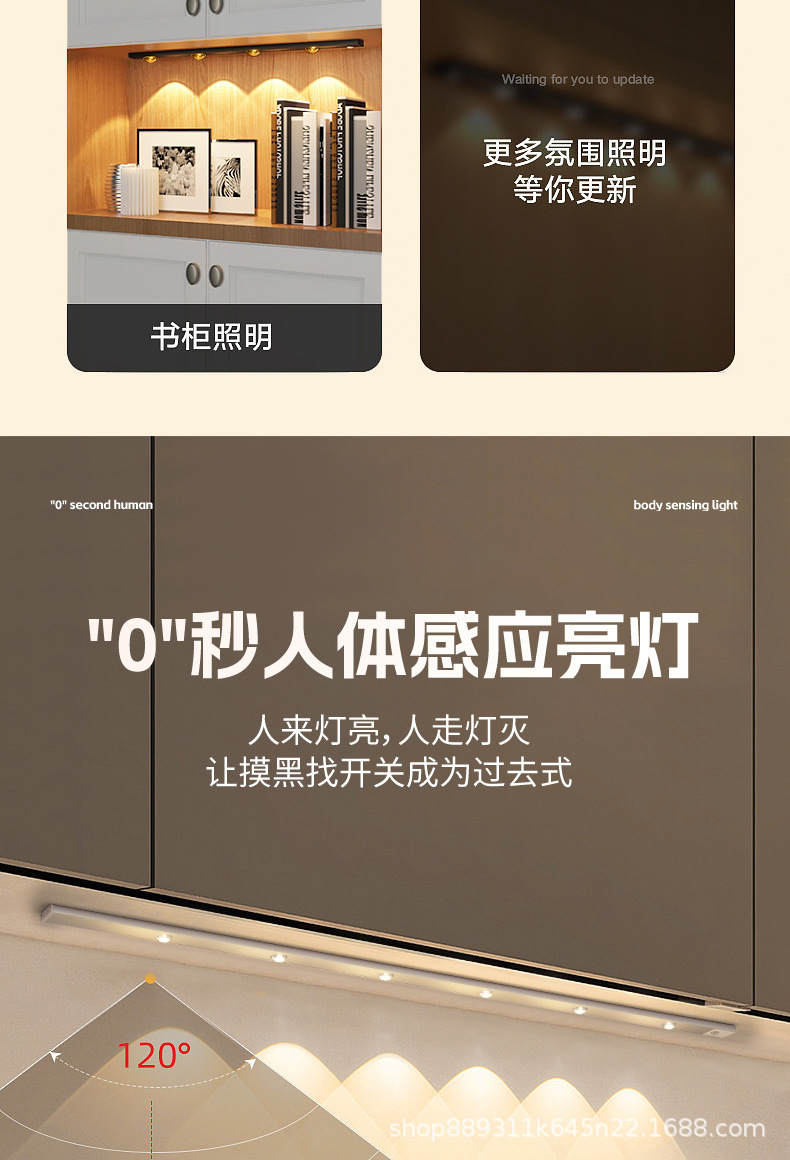 국경을 넘는 스마트 LED 인체 감지등 초박형 캣아이 힐 라이트 스트립 충전식 자가 접착 와인 캐비닛 조명 스트립스토어 가기