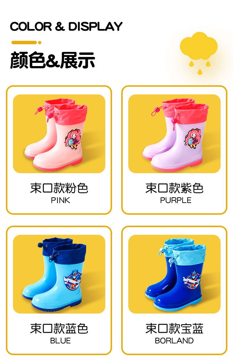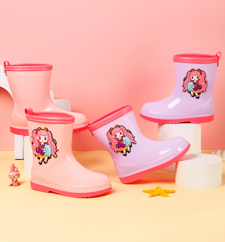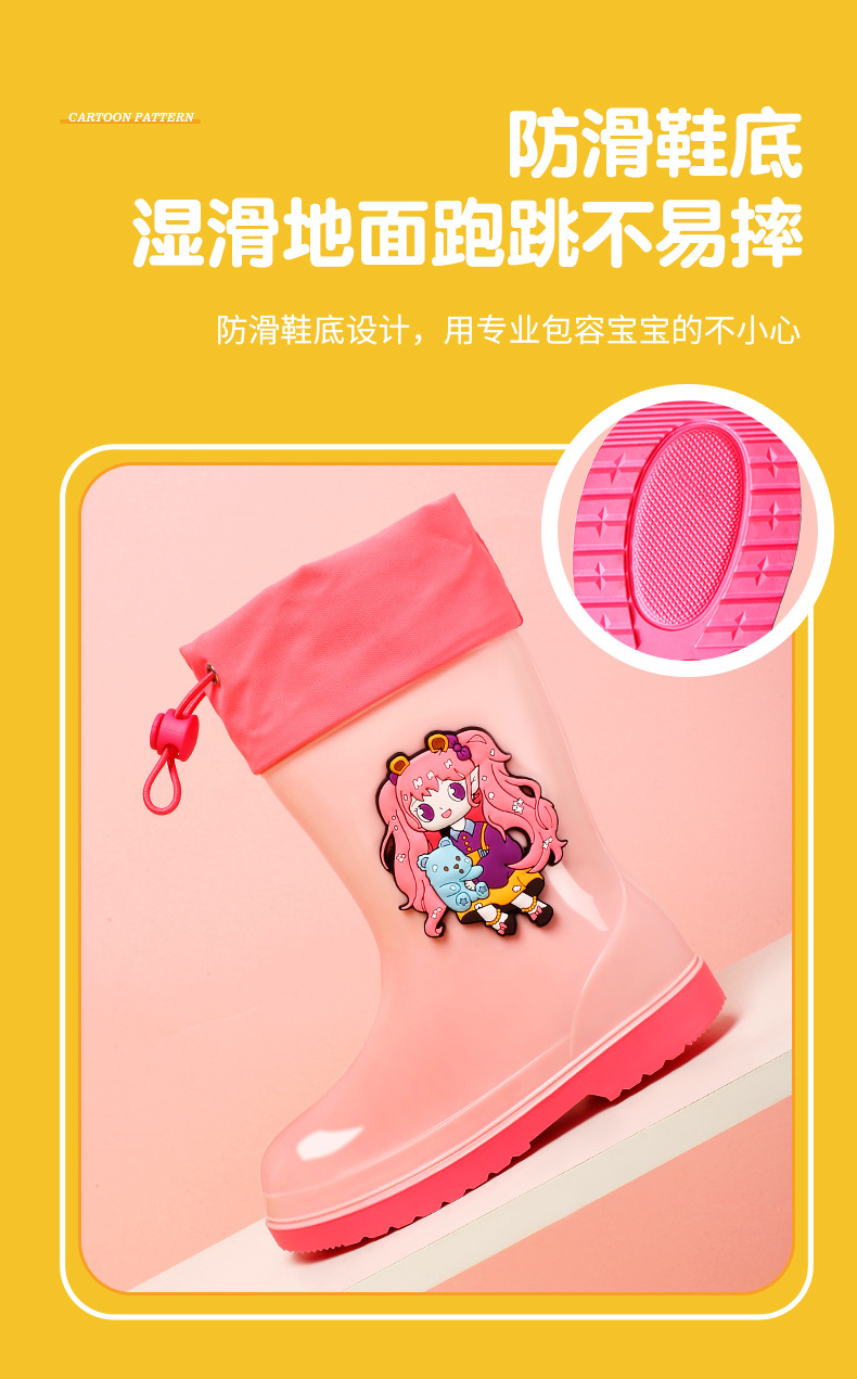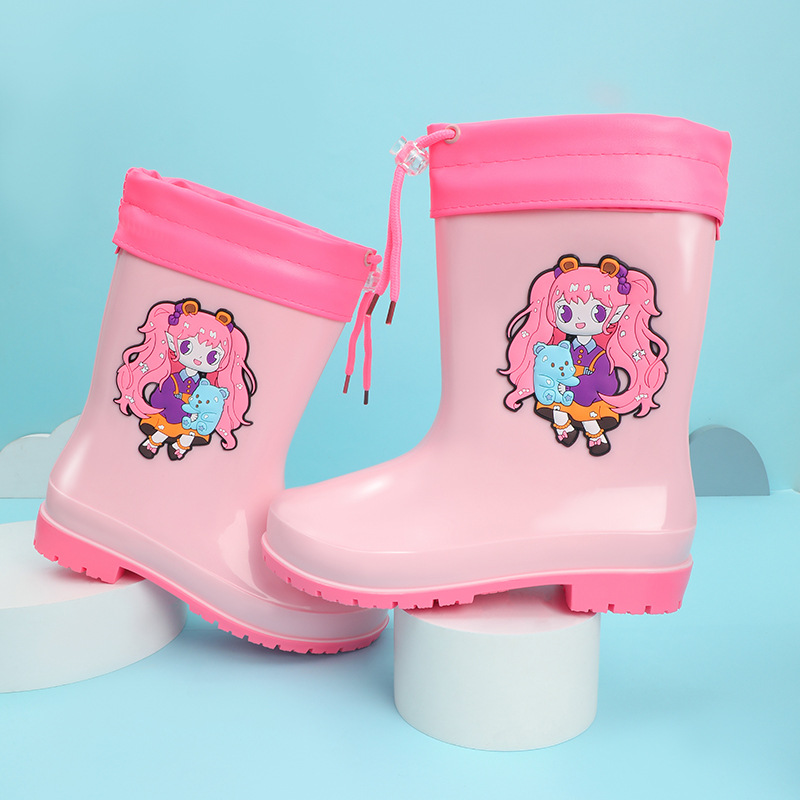 새로운 어린이 면화 레인 슈즈 만화 어린 소녀 어린이 레인 부츠 미끄럼 방지 내마모성 베젤 PVC 워터 슈즈 도매