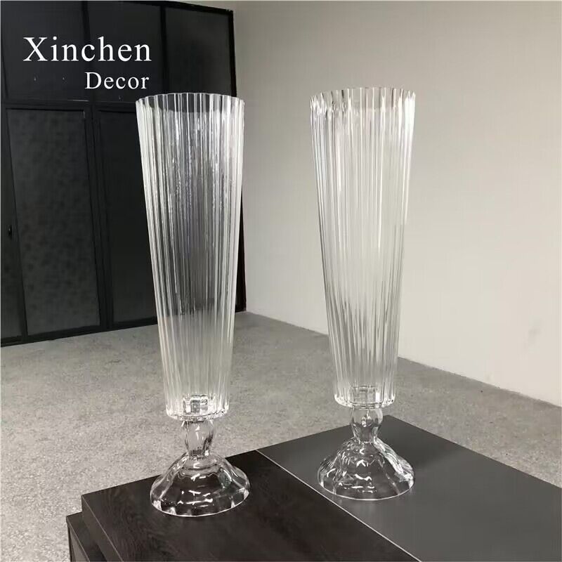 웨딩 장식 꽃병 스트레이트 스트라이프 투명 유리 꽃 도매 꽃꽂이
