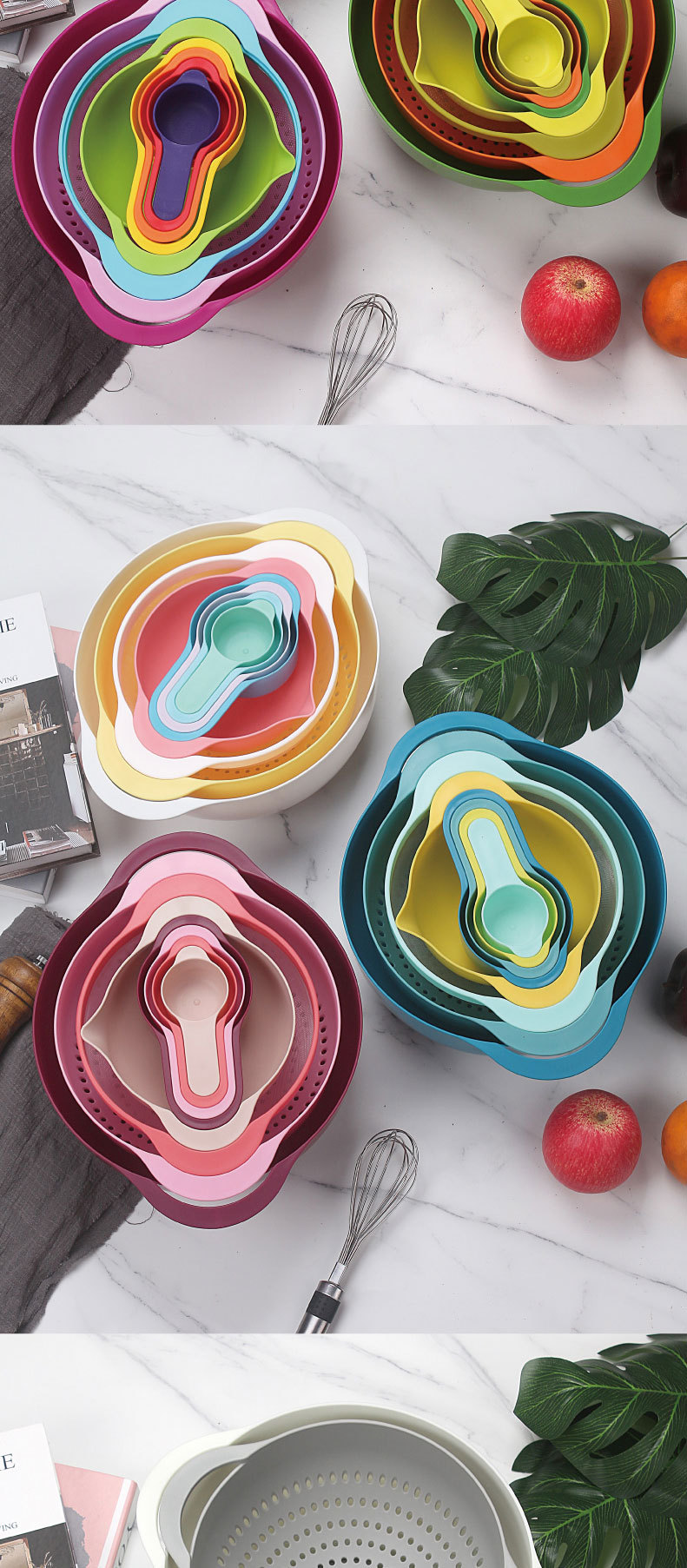 크리 에이 티브 주방 마이크로 메쉬 샐러드 세트 베이킹 레인보우 측정 컵 그릇 8 피스 세트 DIY 주방 용품스토어 가기