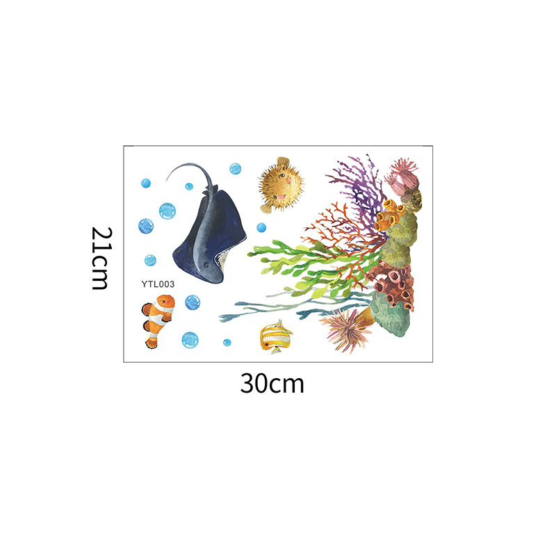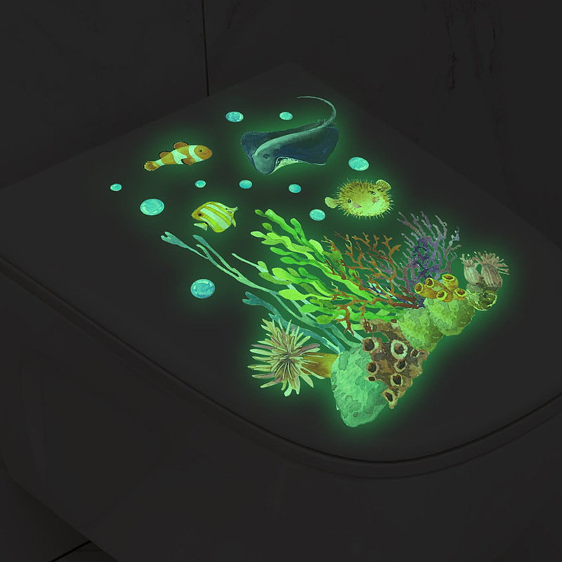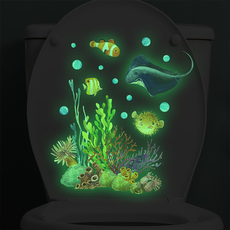 만화 빛나는 산호 악마 물고기 수중 세계 화장실 스티커 욕실 가정 장식 벽 스티커 자체 접착 도매스토어 가기