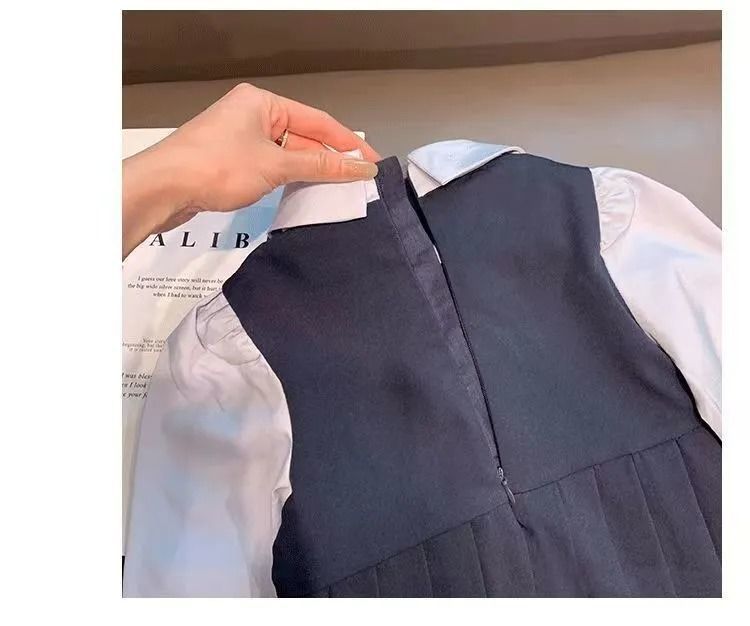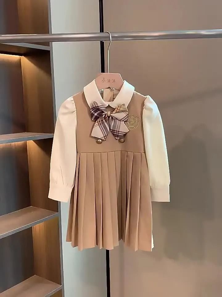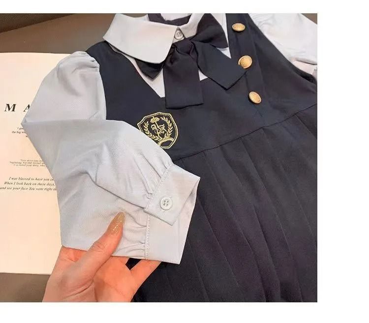 여아 원피스 jk 한국 아동복 가을 캠퍼스 가짜 투피스 공주 원피스 영어 스타일 어린이 원피스