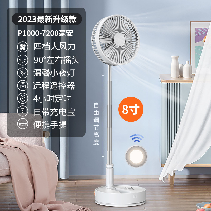 P1000 다기능 저장 접이식 팬 usb 충전 팬 조용한 텔레스코픽 바닥 데스크탑 흔들기 팬스토어 가기