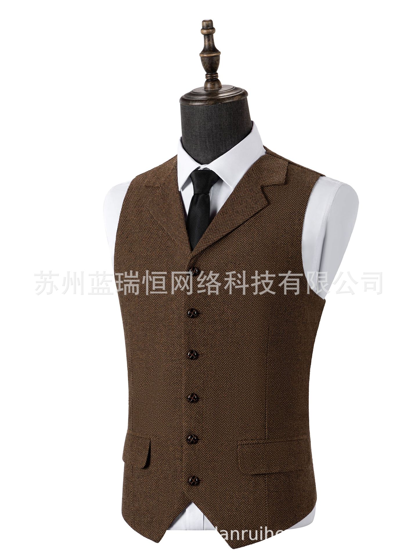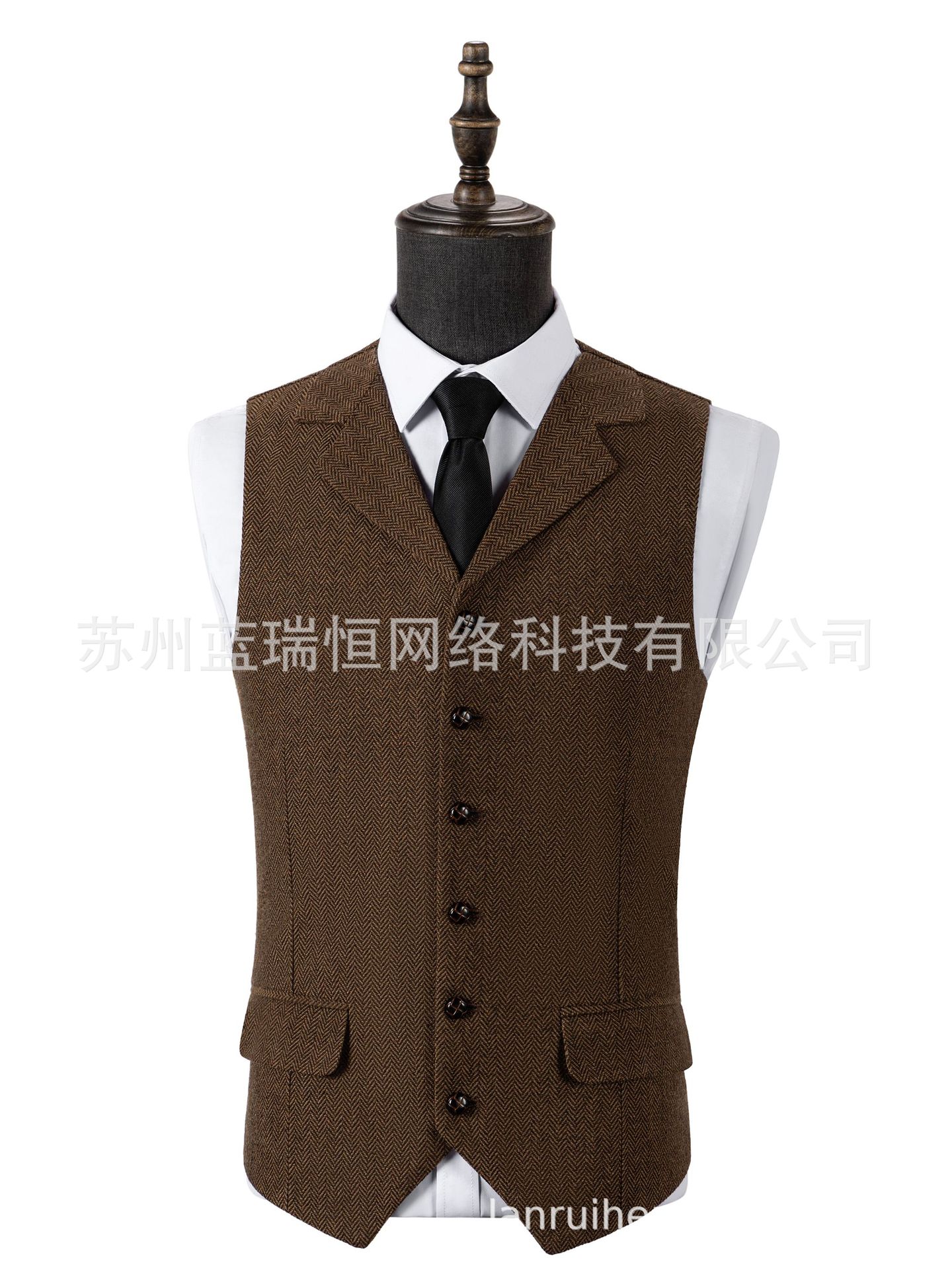 남자 조끼 국경 뜨거운 판매 헤링본 패턴 조끼 남자 신랑 웨딩 드레스 조끼 정장 조끼 재고 있음