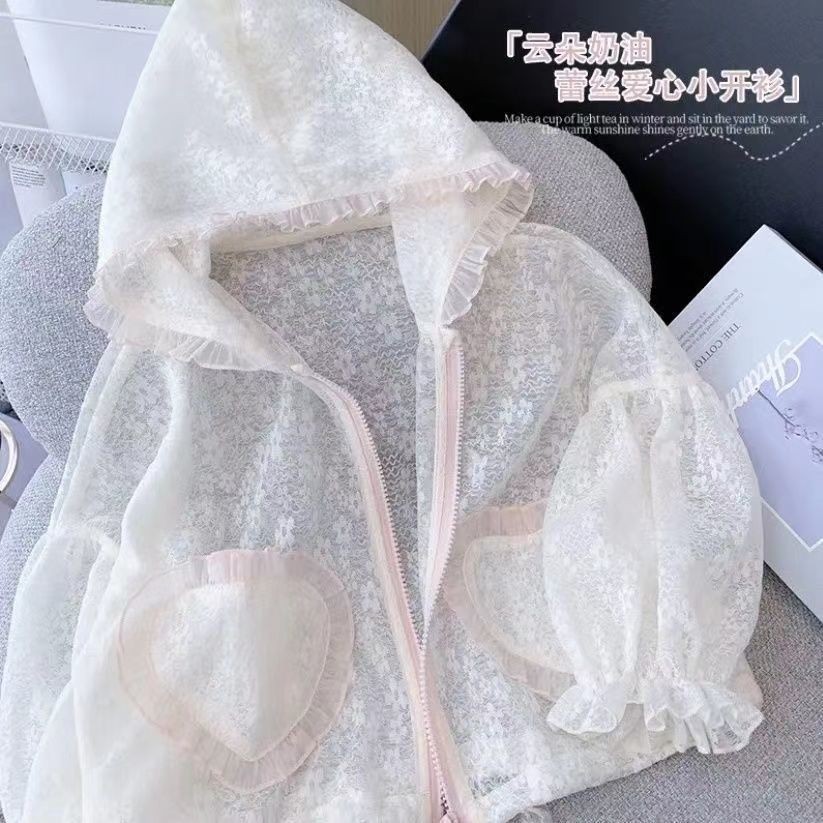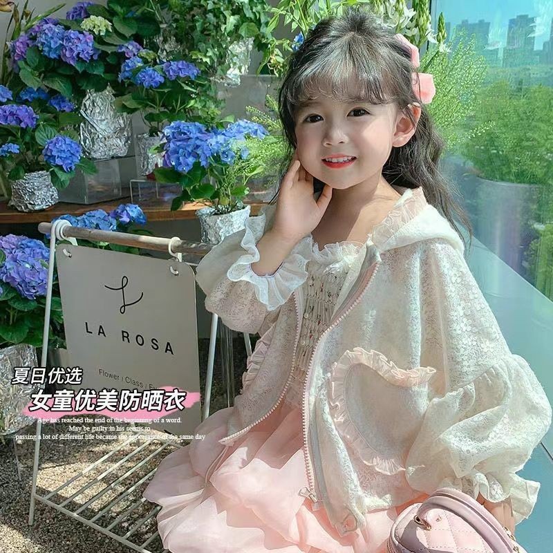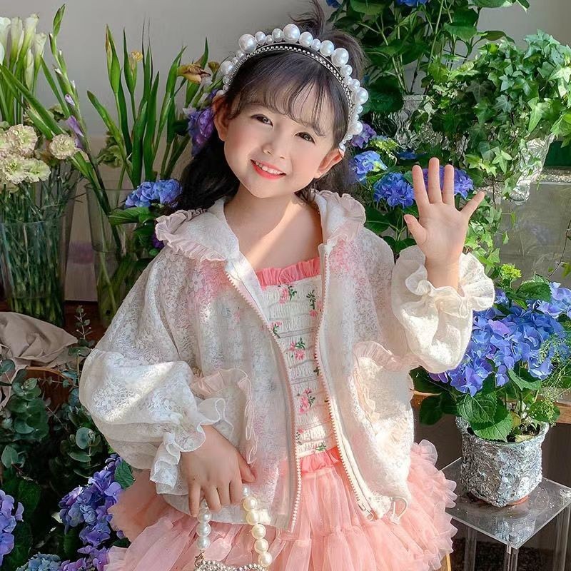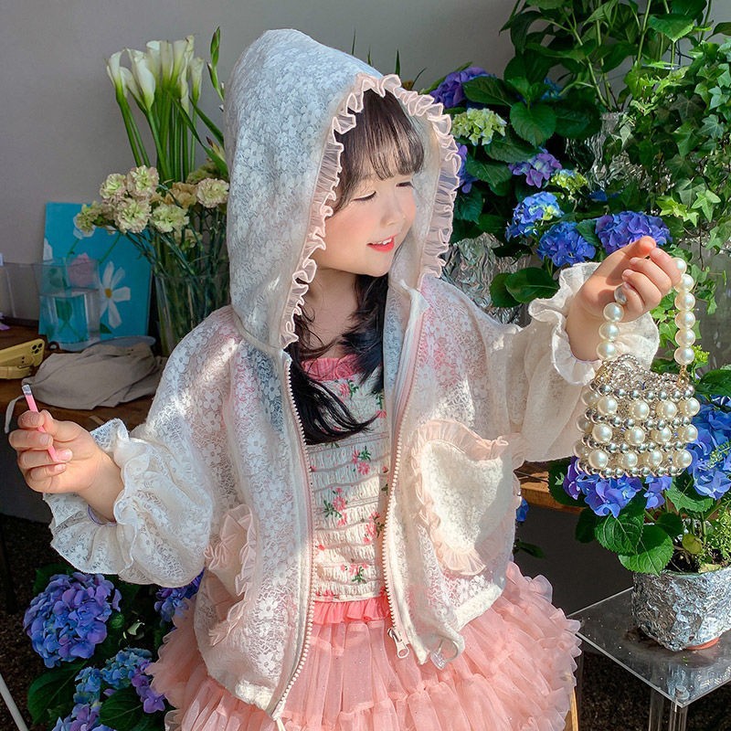 여아 자외선 차단제 의류 2022 새로운 스타일 여름 소녀의 레이스 후드 긴 소매 얇은 어린이 에어컨 의류 코트