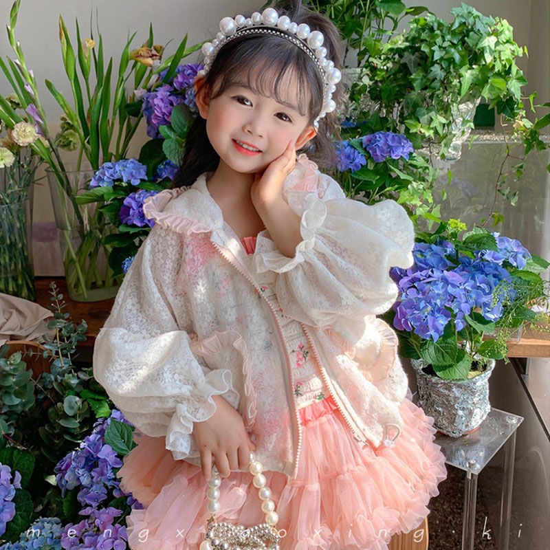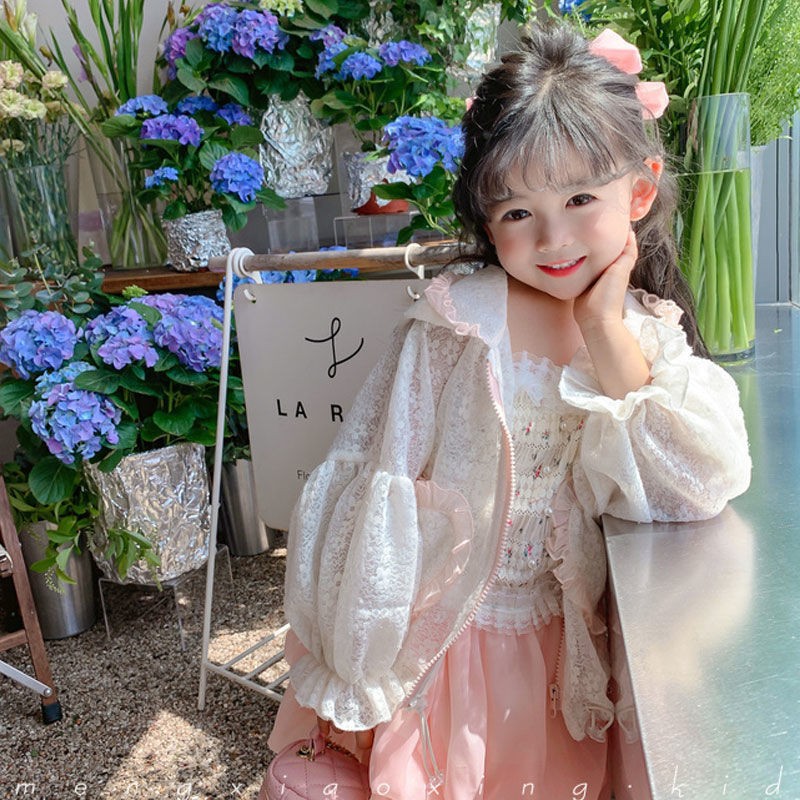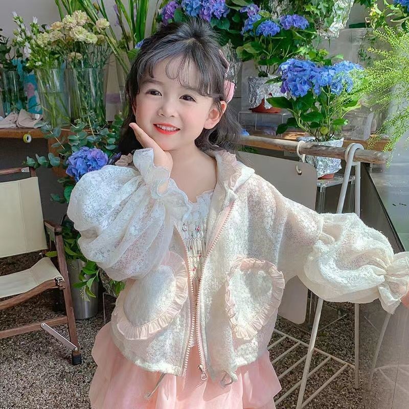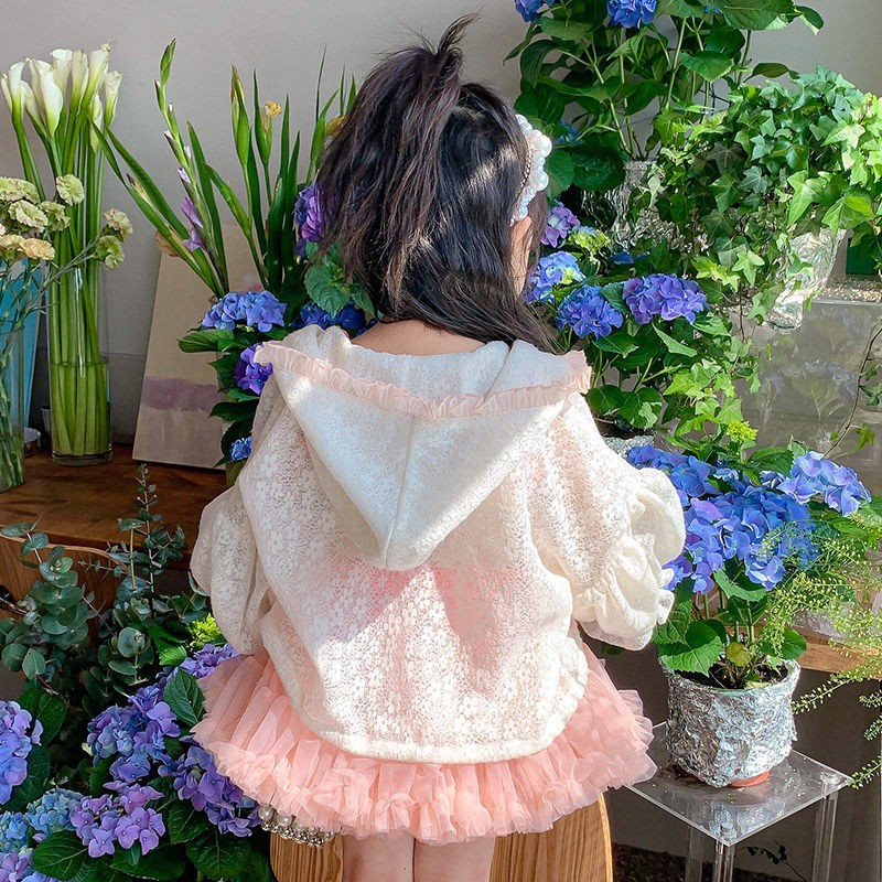여아 자외선 차단제 의류 2022 새로운 스타일 여름 소녀의 레이스 후드 긴 소매 얇은 어린이 에어컨 의류 코트스토어 가기