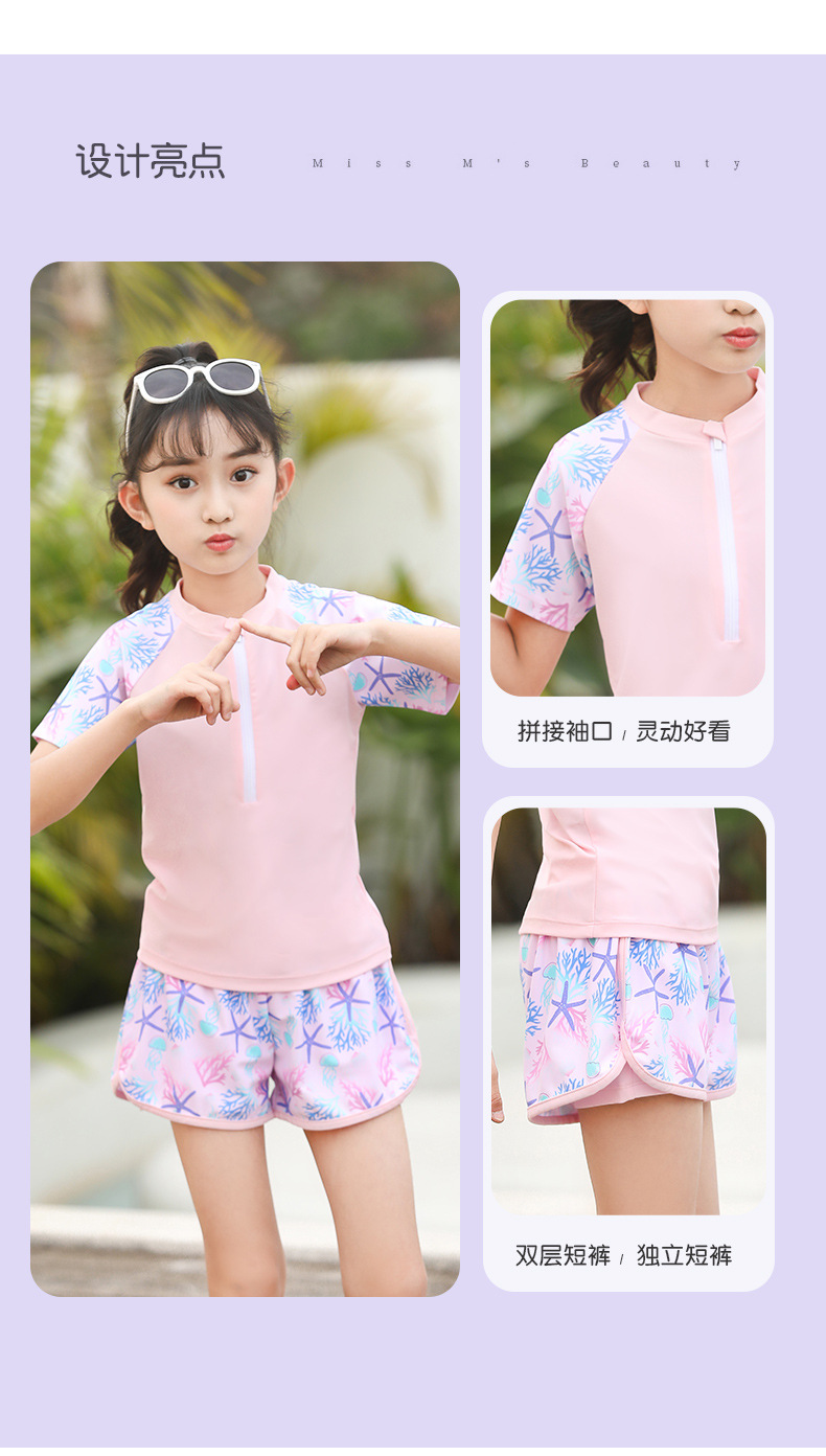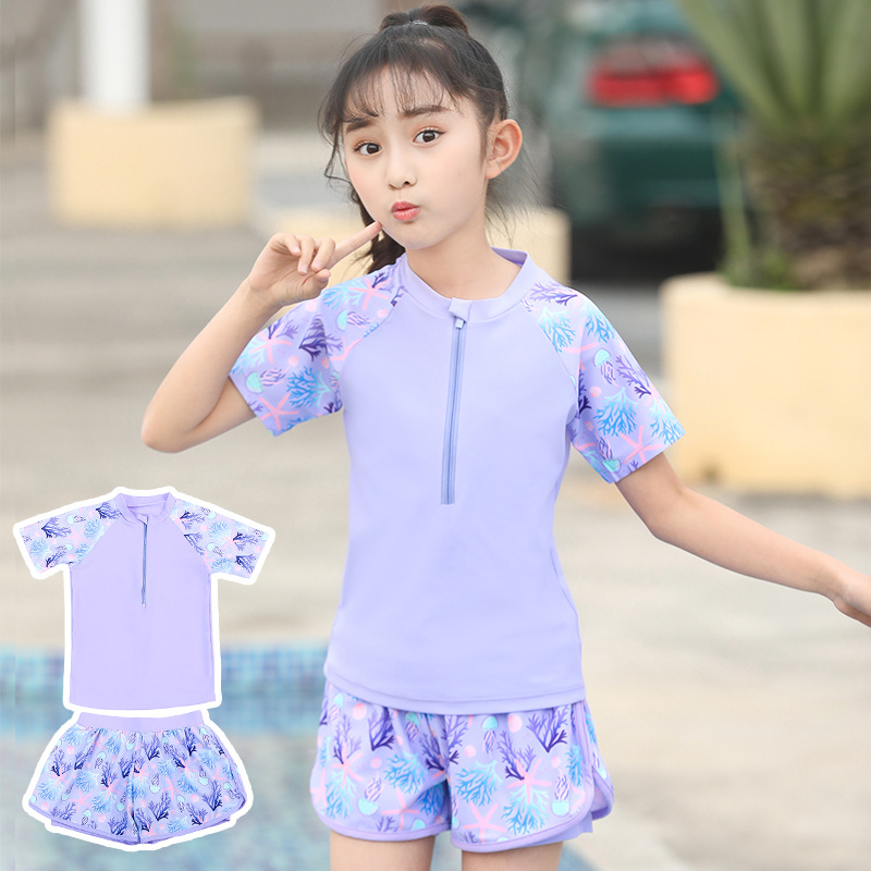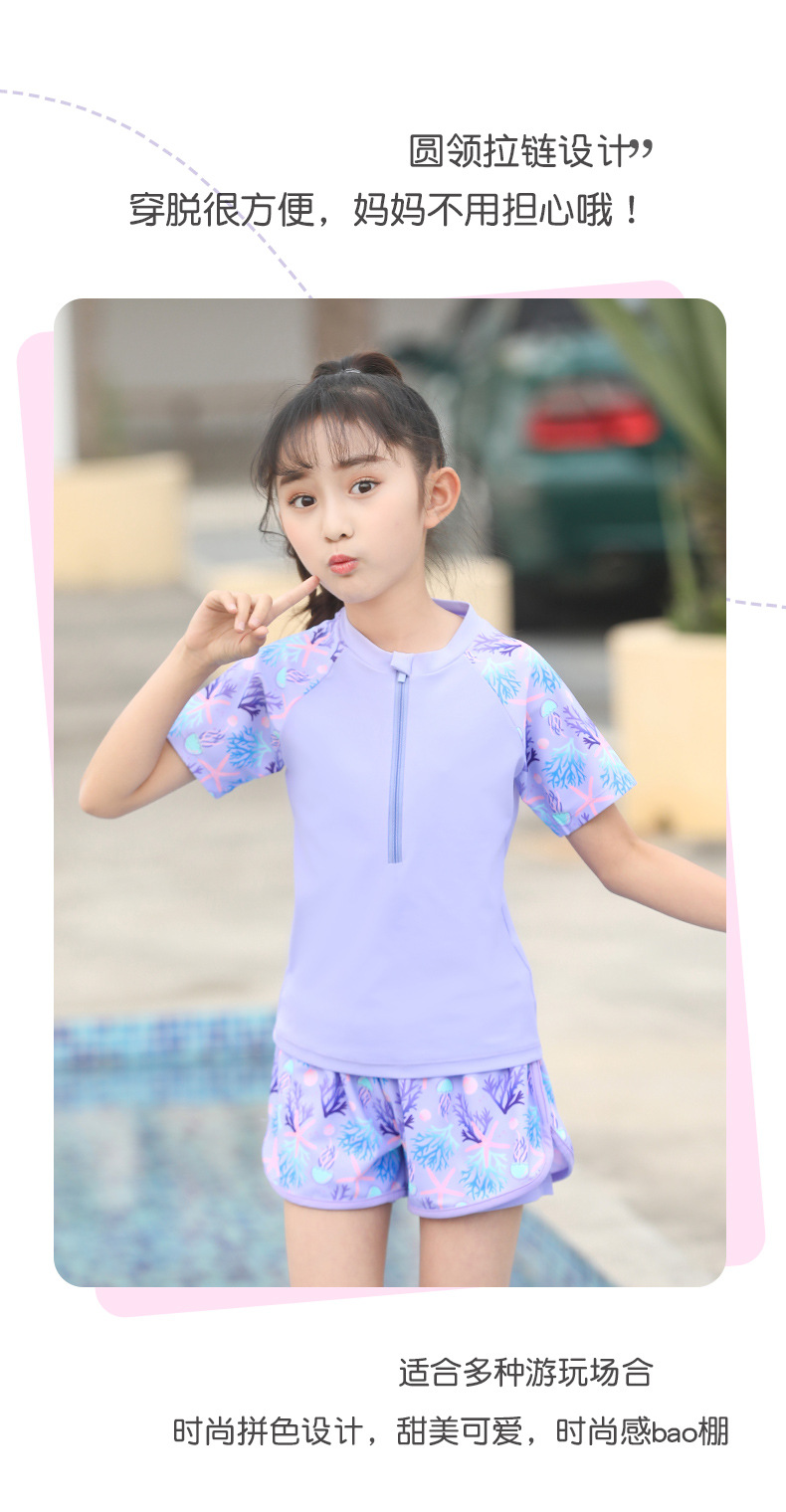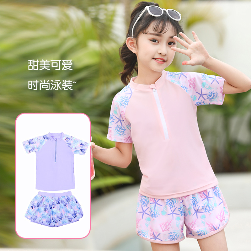 새 어린이 수영복 도매 CUHK 어린이 귀여운 컬러 스티치 수영복 학생 수영 수업 세트 수영스토어 가기