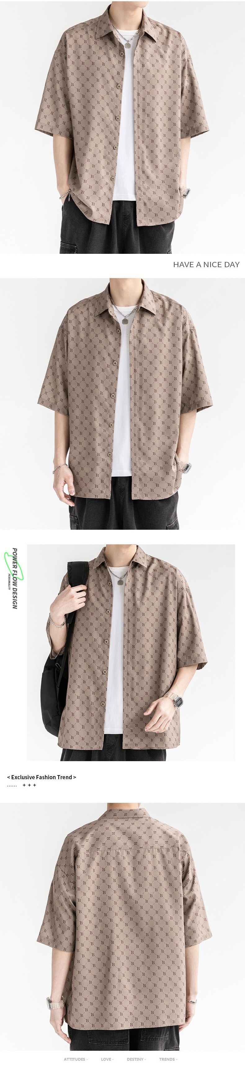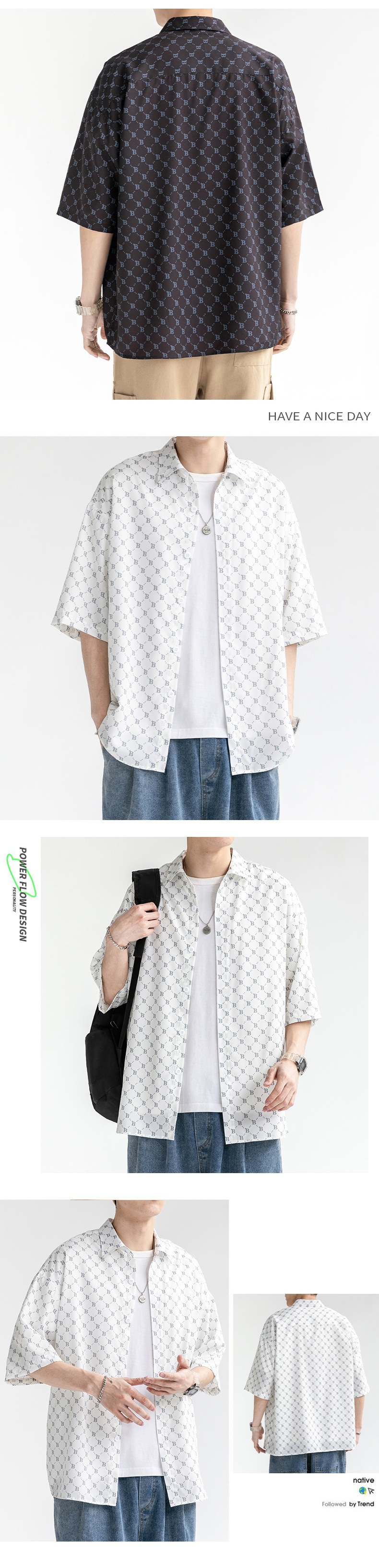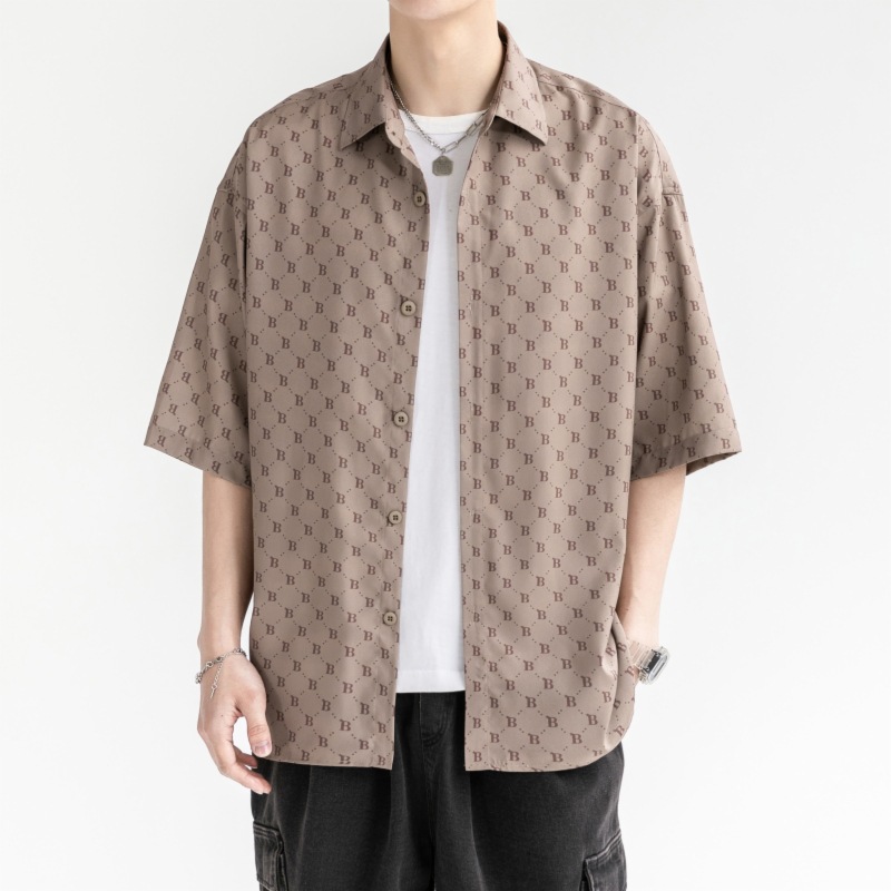 2023 여름 얇은 아이스 실크 쿨 셔츠 유행 하이 스트리트 남성 반 소매 셔츠 새로운 캐주얼 모든 매치 탑스토어 가기