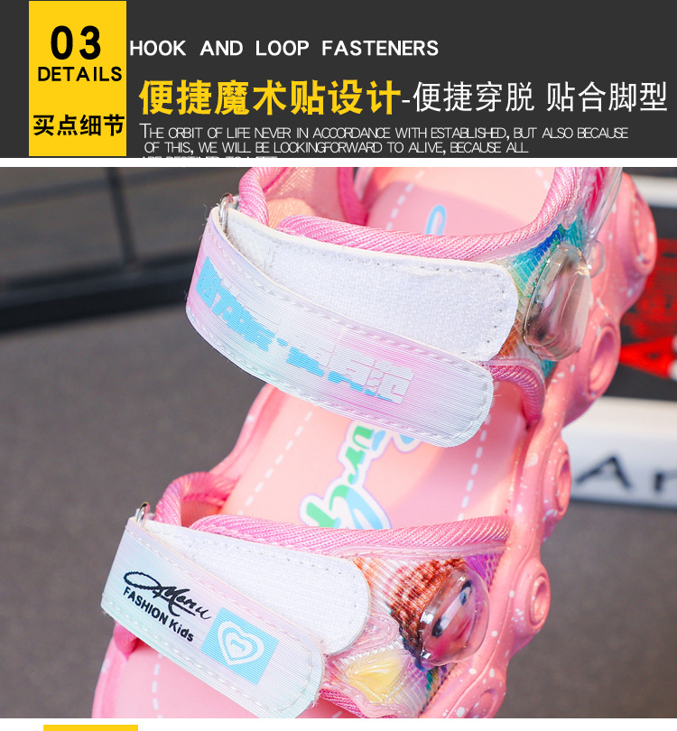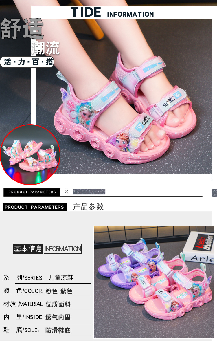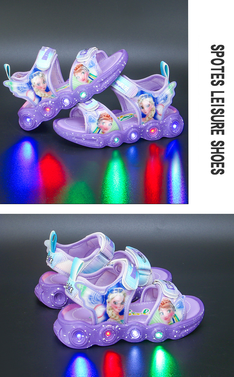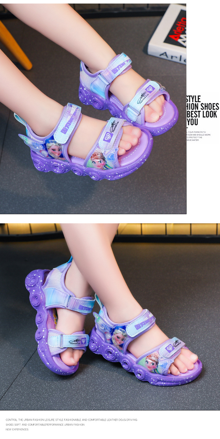 조명이있는 어린이 스포츠 샌들 여성용 2023 여름 새 소녀 샌들 중소 어린이 소녀 공주 비치 신발스토어 가기