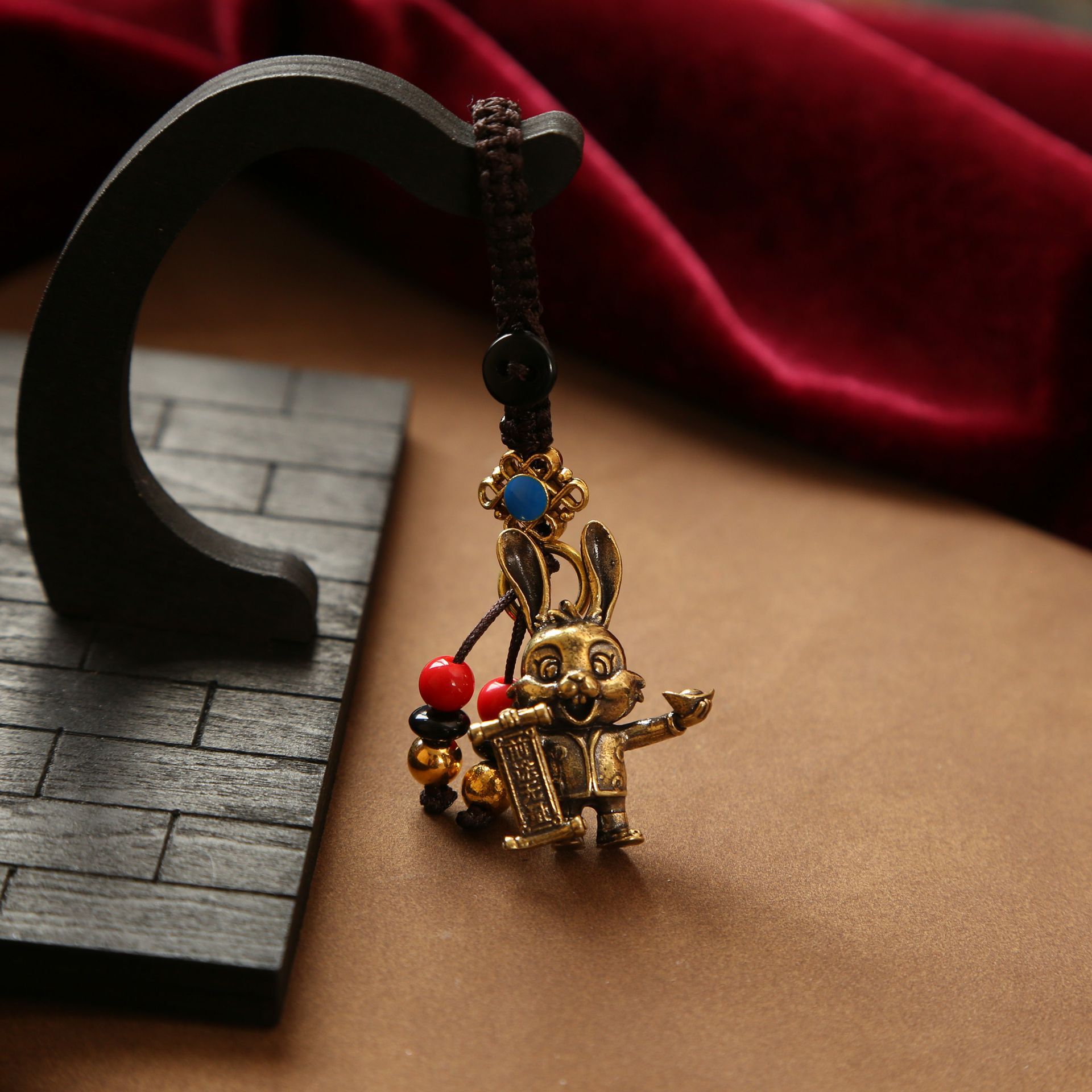토끼의 해는 미래에 무한합니다. 남성과 여성을위한 키 체인 펜던트 액세서리 평화와 기쁨을위한 자동차 키 백 펜던트 펜던트