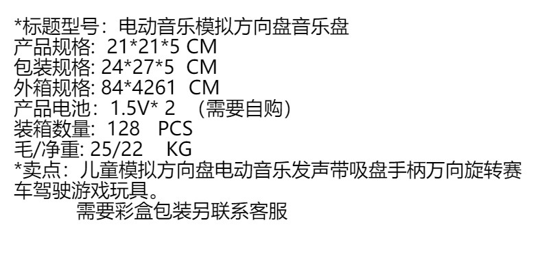 흡입 컵 손잡이가있는 어린이 시뮬레이션 스티어링 휠 전기 음악 사운드 범용 회전 레이싱 카 운전 게임 장난감스토어 가기