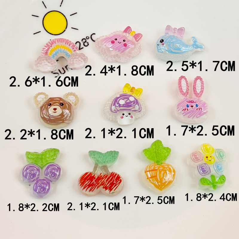 투명 낙서 버섯 무지개 토끼 돌고래 과일 전화 케이스 헤어 액세서리 크림 젤 패치 헤어핀 액세서리