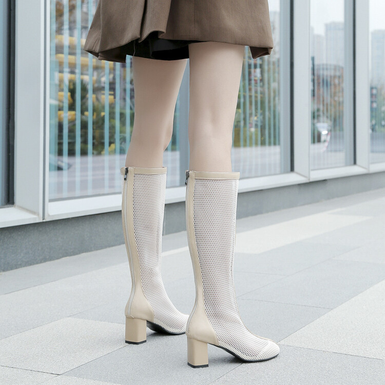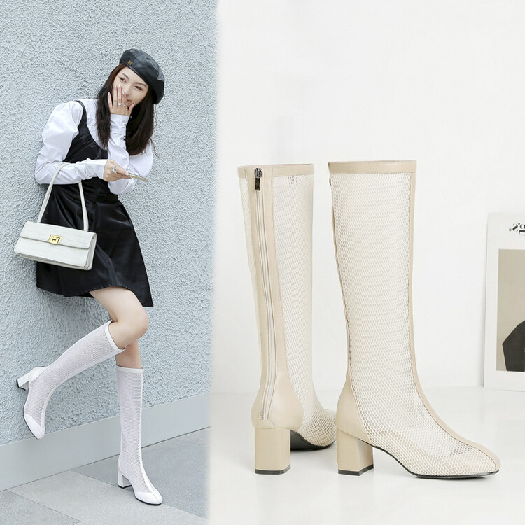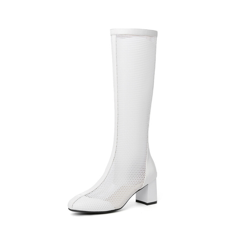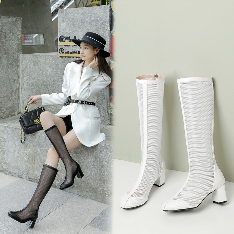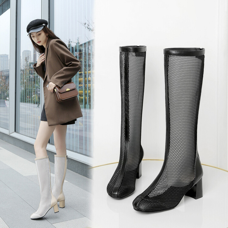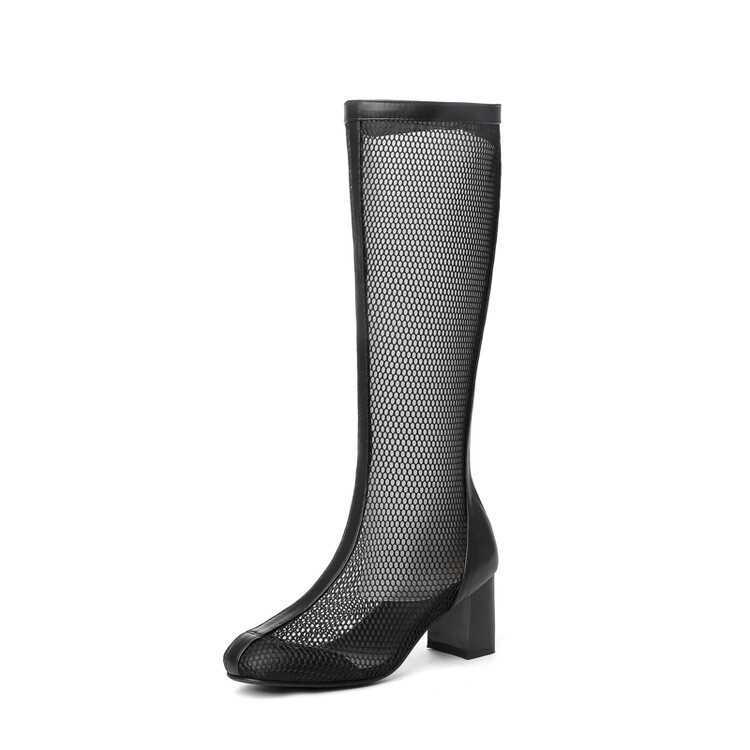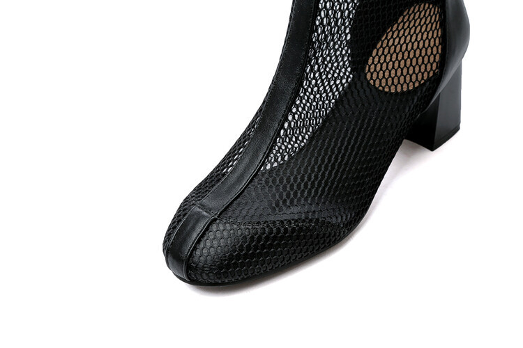 23 외국 무역 그물 부츠 두꺼운 뒤꿈치 하이힐 라운드 헤드 스티칭 중공 부츠 그물 여성 부츠 40-45 사이즈 신발스토어 가기