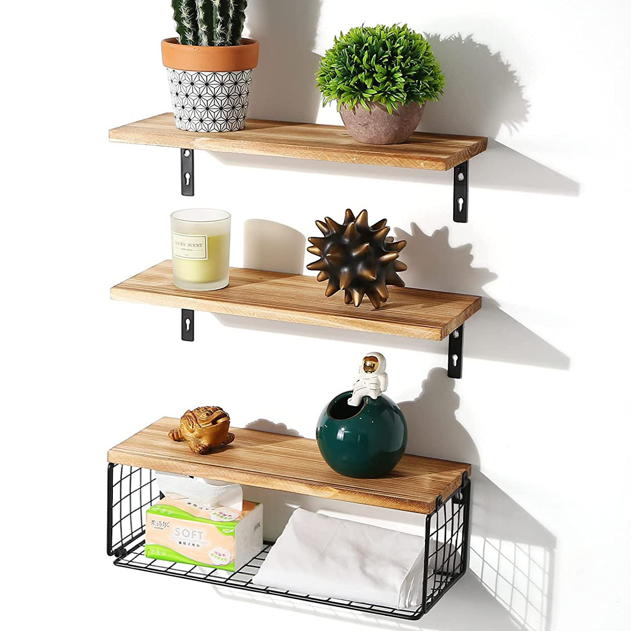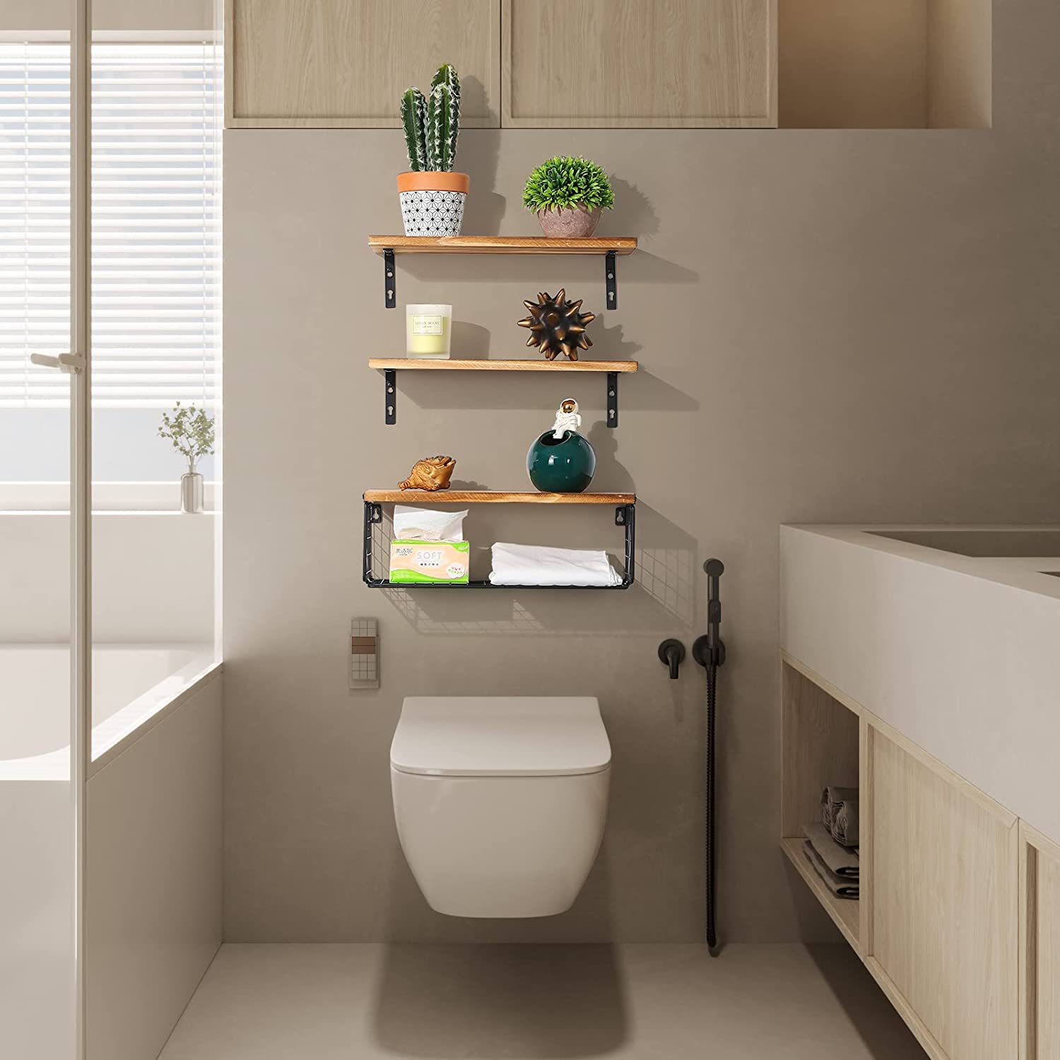 컨트리 스타일 플로팅 랙 종이 보관 바구니 나무 파티션 서스펜션 스토리지 랙과 벽걸이 형 나무 욕실 랙스토어 가기