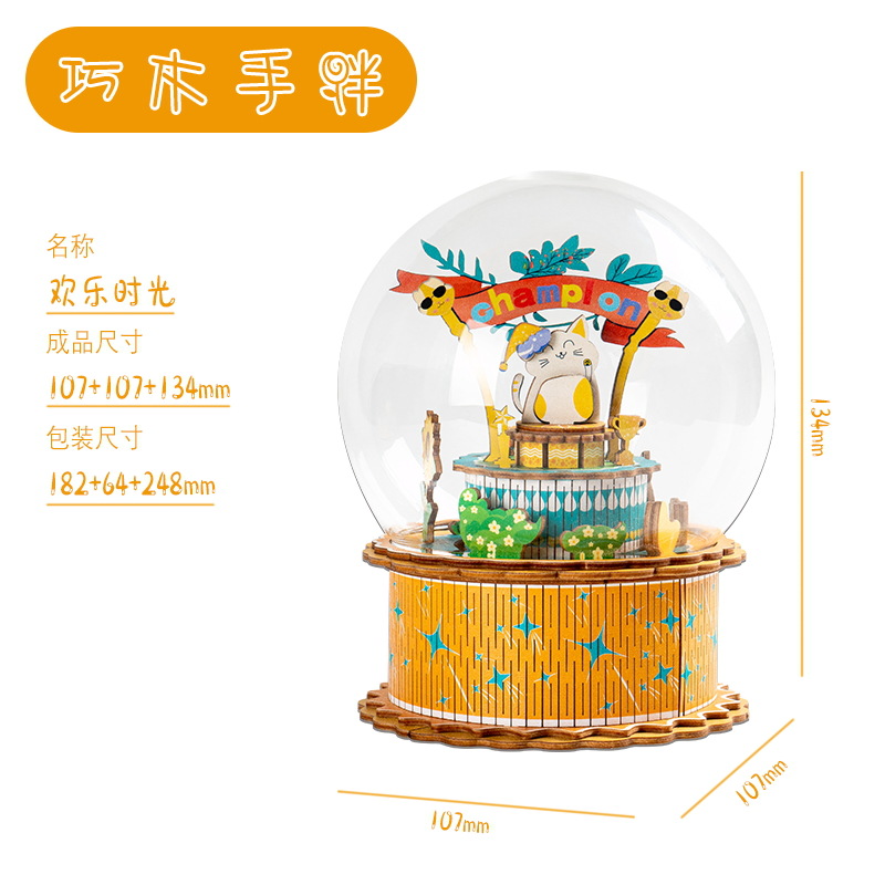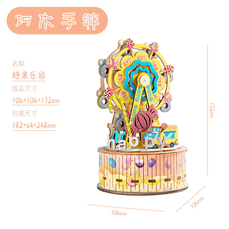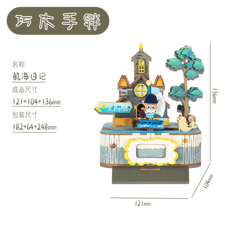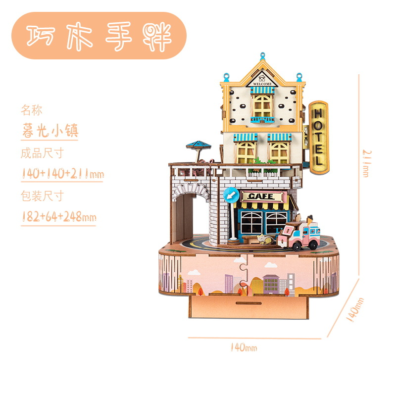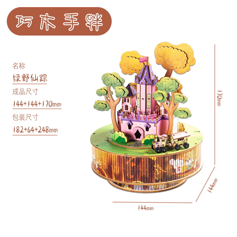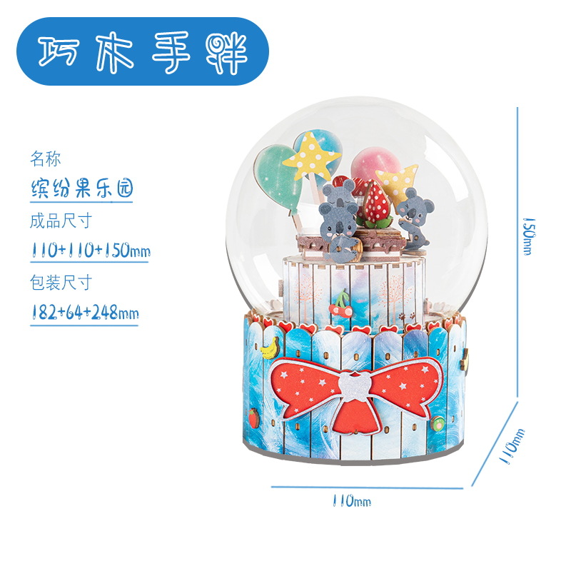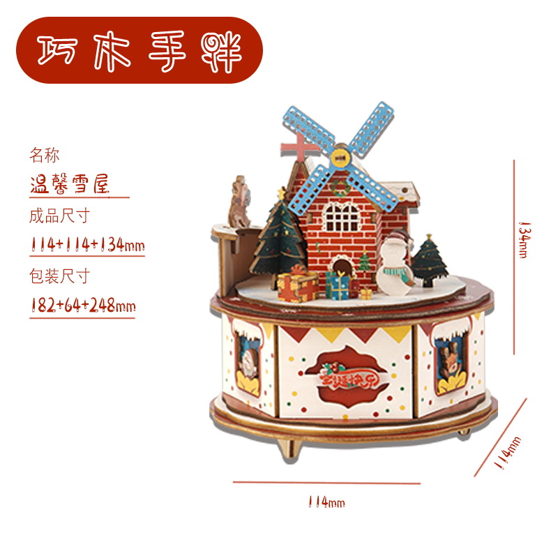 크리스마스 어린이 입체 빌딩 블록 3d 회전 음악 상자 소년과 소녀 선물 나무 크리스마스 스노우 하우스 퍼즐 모델스토어 가기