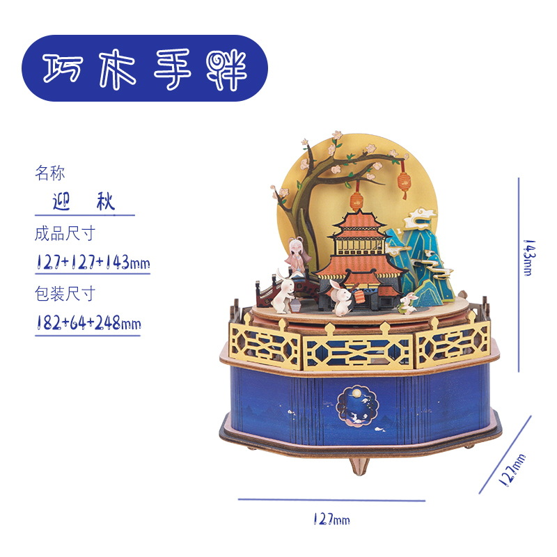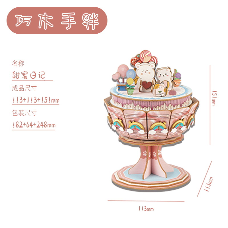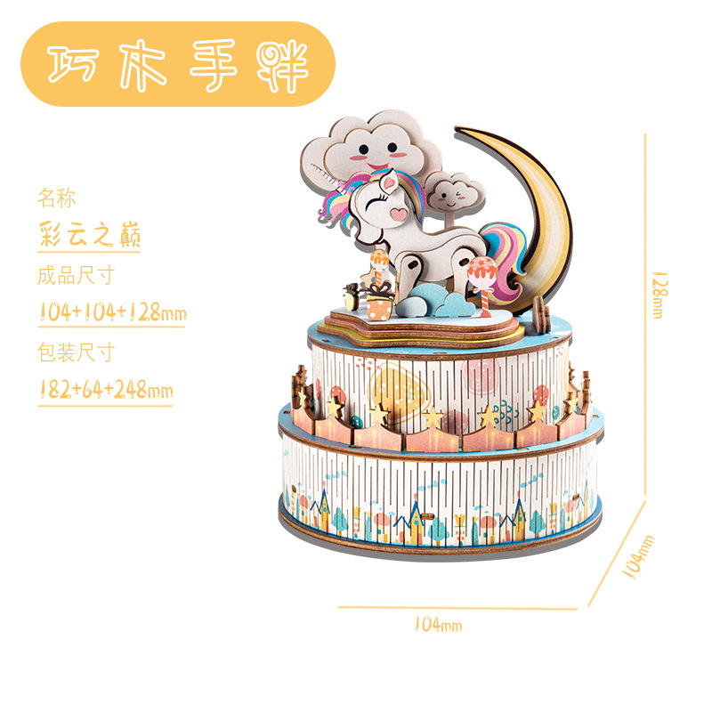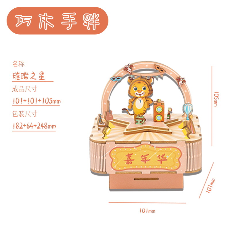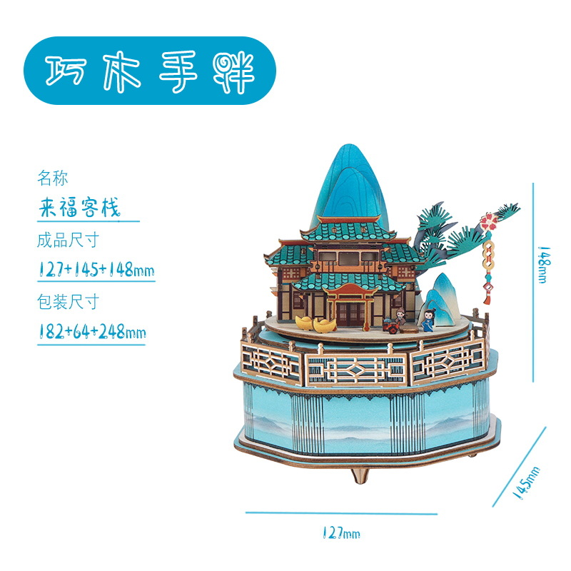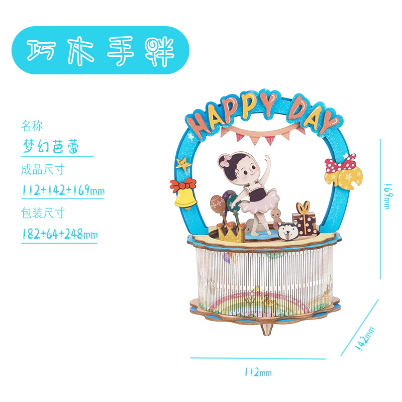 크리스마스 어린이 입체 빌딩 블록 3d 회전 음악 상자 소년과 소녀 선물 나무 크리스마스 스노우 하우스 퍼즐 모델스토어 가기