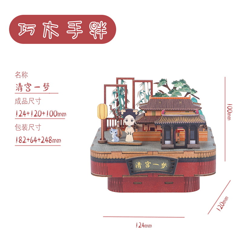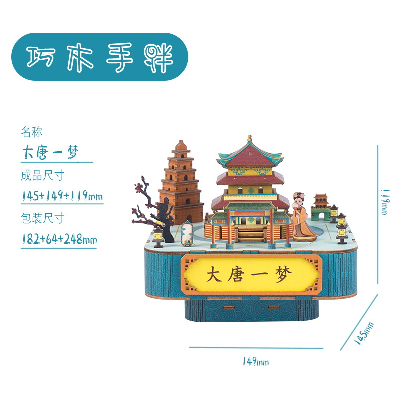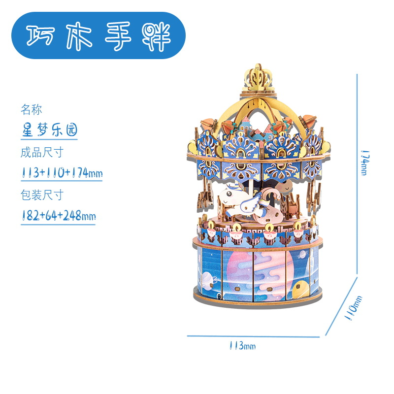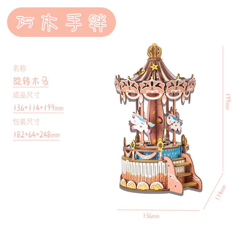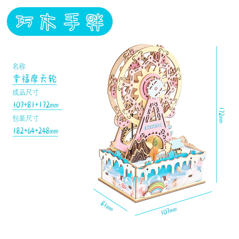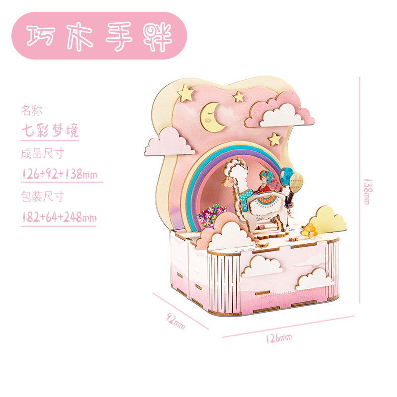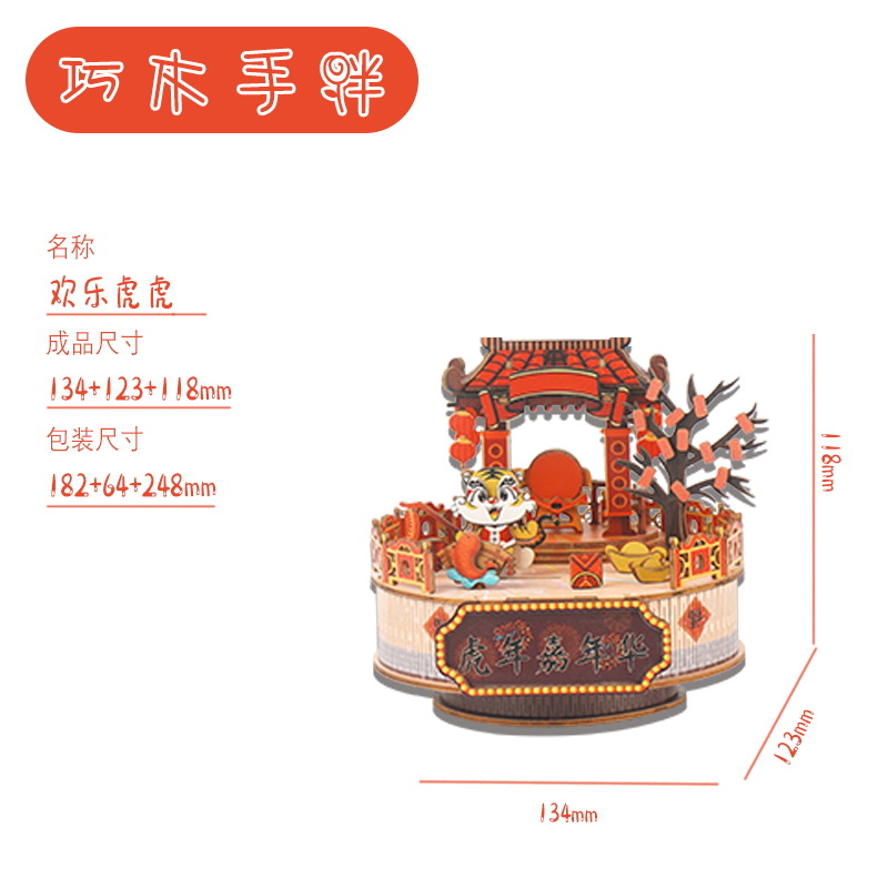 크리스마스 어린이 입체 빌딩 블록 3d 회전 음악 상자 소년과 소녀 선물 나무 크리스마스 스노우 하우스 퍼즐 모델스토어 가기