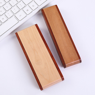 现货批发单槽双槽木头笔盒 拼色实木翻转钢笔盒复古创意木质笔盒