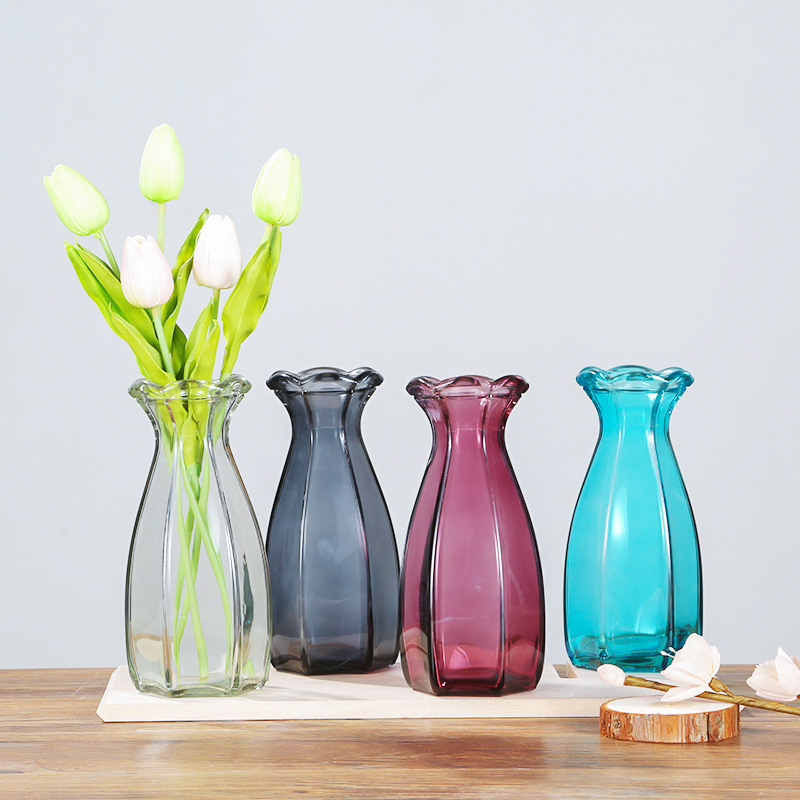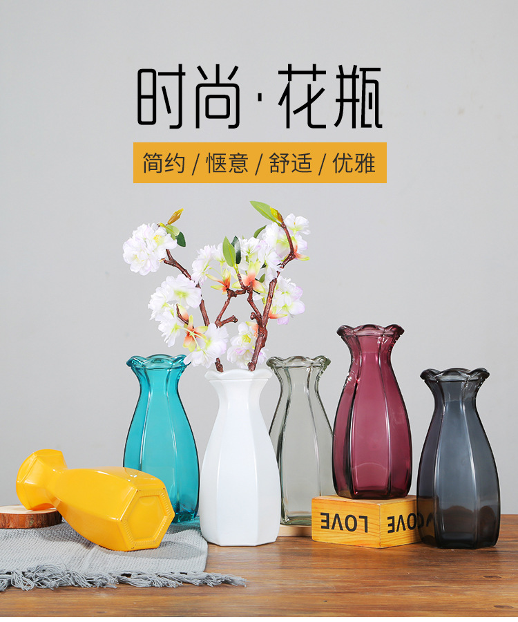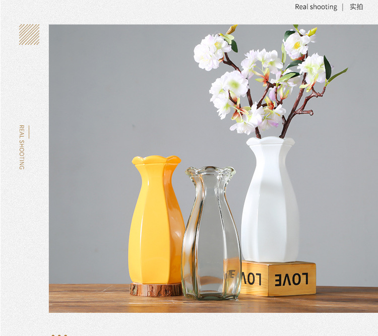 현대 미니멀리스트 창조적 인 유리 꽃병 육각형 병 투명 물 제기 꽃꽂이 수경 데스크탑 거실 장식품