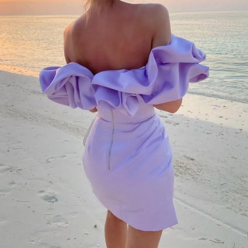 국경을 넘나 드는 유럽과 미국의 원피스 2024 여름 연예인 여성 러플 섹시한 날씬한 어깨 하이 엔드 우아한 원피스 스커트스토어 가기