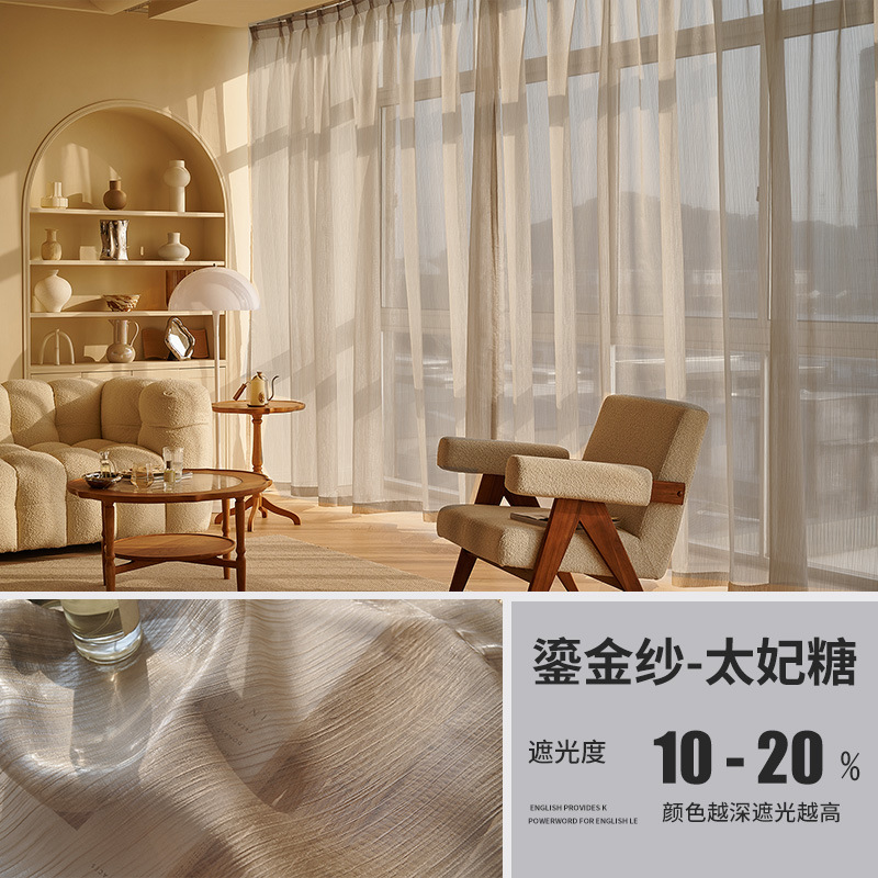 프랑스 스타일 인터넷 연예인 드림 라이트 럭셔리 스트리머 진주 빛 골드 거즈 빛을 투과하는 불사한 거실 침실 베이 창 커튼 창 화면스토어 가기