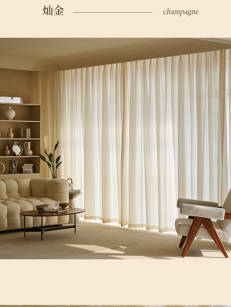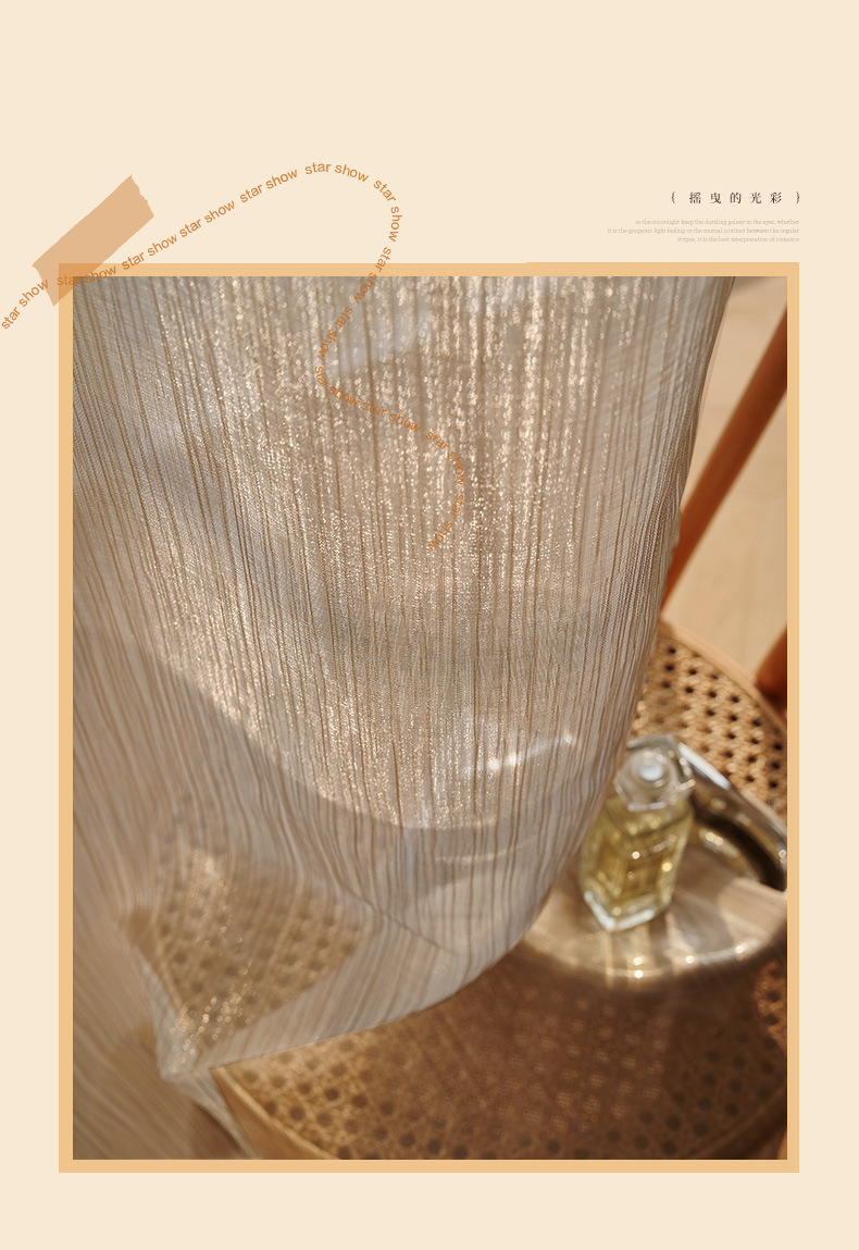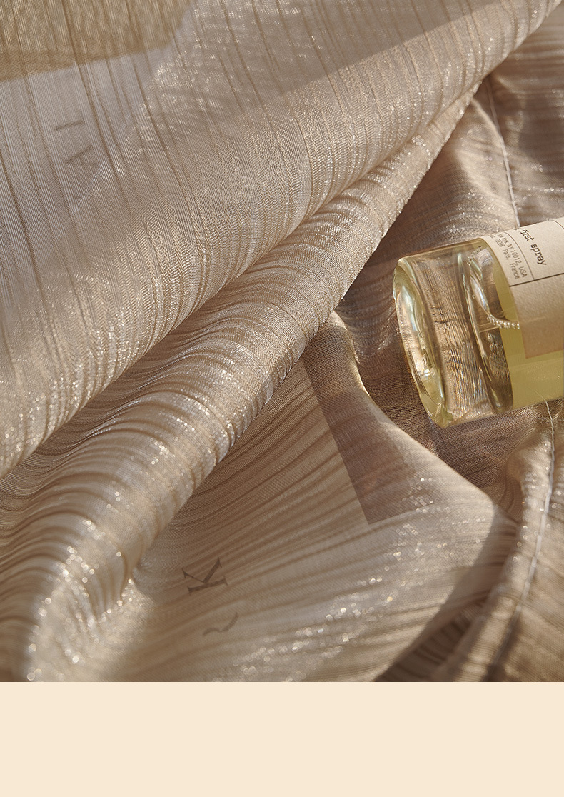 프랑스 스타일 인터넷 연예인 드림 라이트 럭셔리 스트리머 진주 빛 골드 거즈 빛을 투과하는 불사한 거실 침실 베이 창 커튼 창 화면