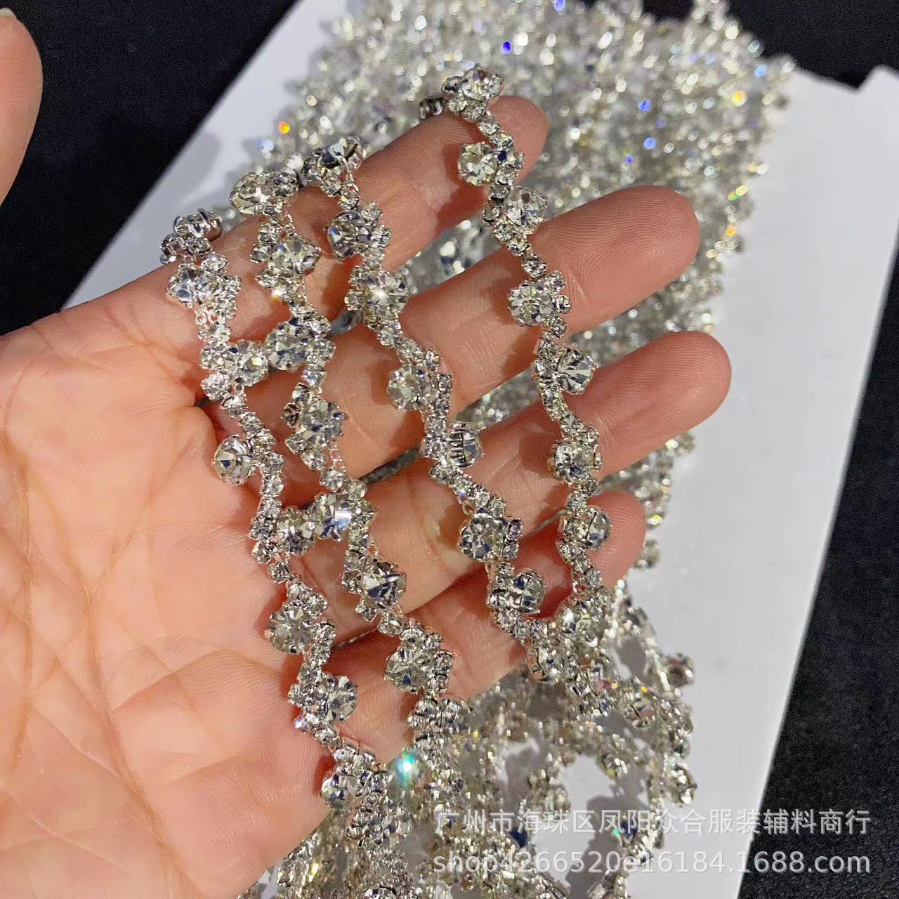 공장 재고 S 자형 모조 다이아몬드 발톱 체인 용접 체인 드릴링 체인 DIY 의류 웨딩 원피스 장식 액세서리 대외 무역 액세서리스토어 가기