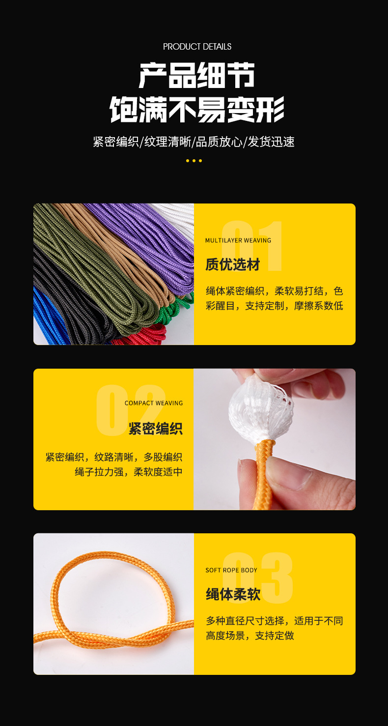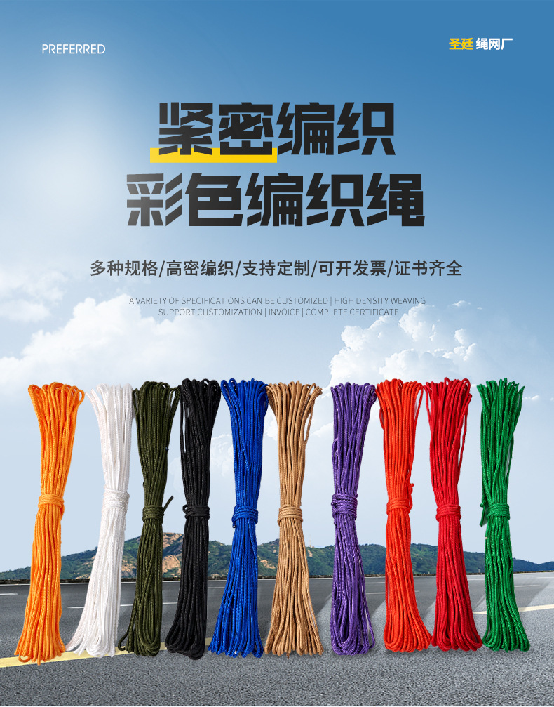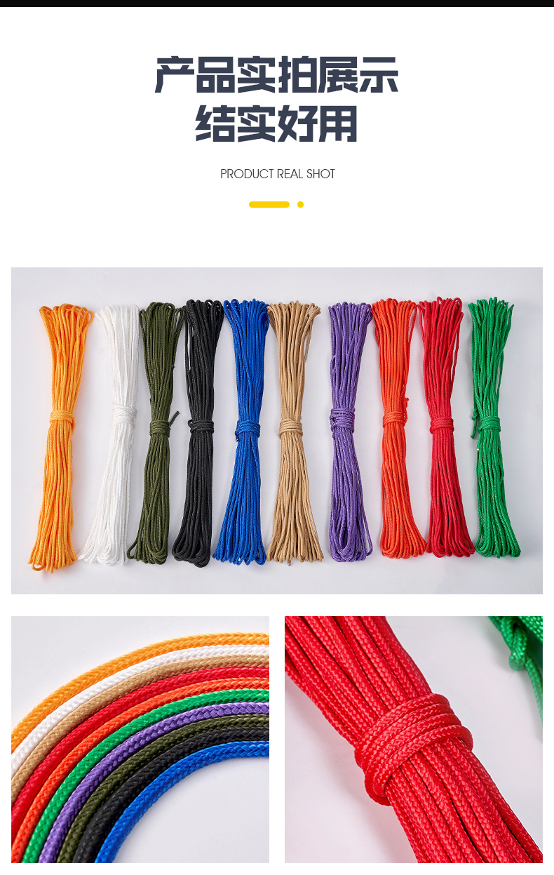 컬러 나일론 로프 야외 등산 텐트 끈 안전 로프 제조업체 도매 묶음 코어 브레이드 로프스토어 가기