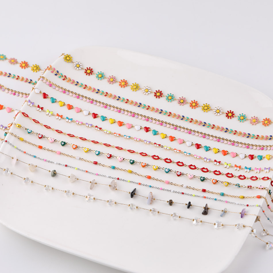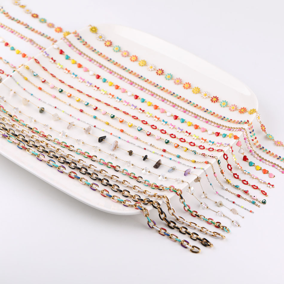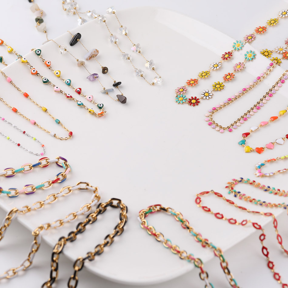 스테인레스 스틸 컬러 크리스탈 진주 체인 하트 모양의 눈 수제 체인 DIY 팔찌 목걸이 액세서리 재료스토어 가기