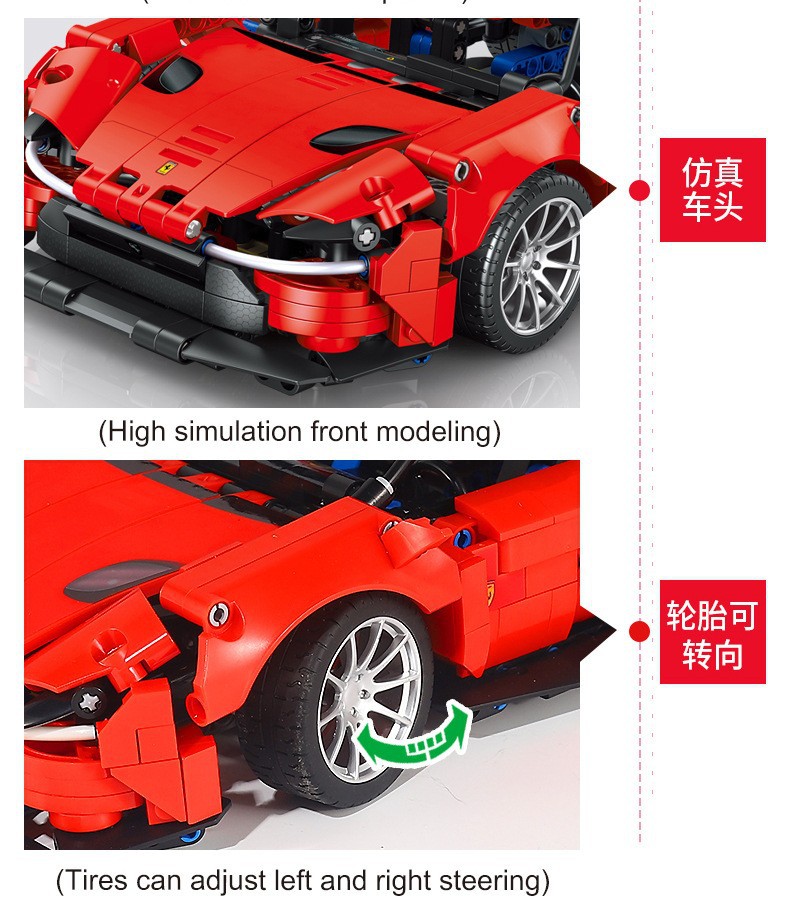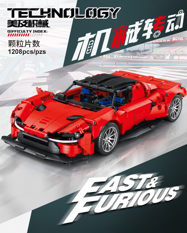 미국 및 기계 8610 기술 팔랄리 레드 슈퍼 러닝 카 어린이 퍼즐 빌딩 블록 모델 장난감 선물