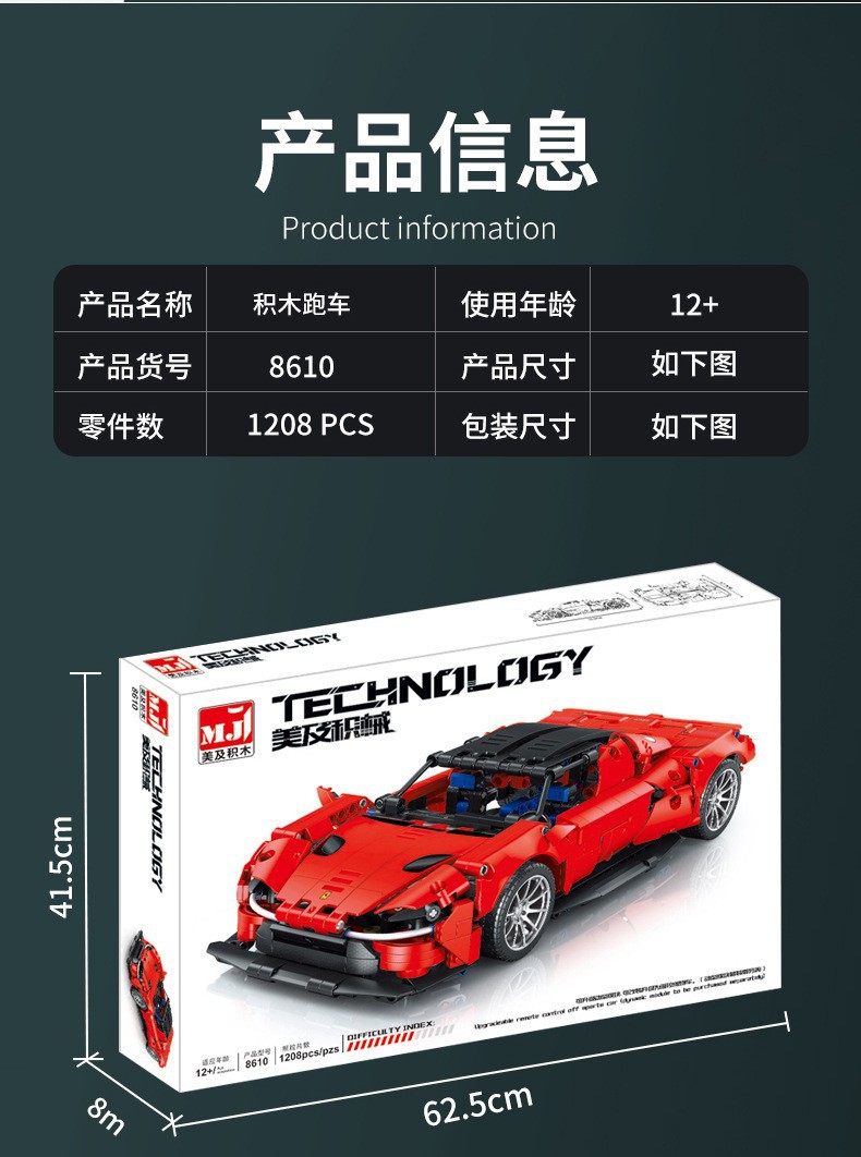 미국 및 기계 8610 기술 팔랄리 레드 슈퍼 러닝 카 어린이 퍼즐 빌딩 블록 모델 장난감 선물스토어 가기