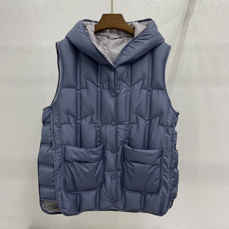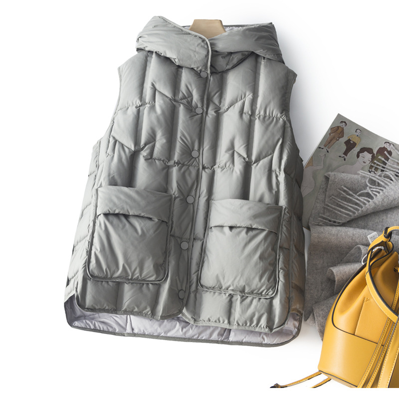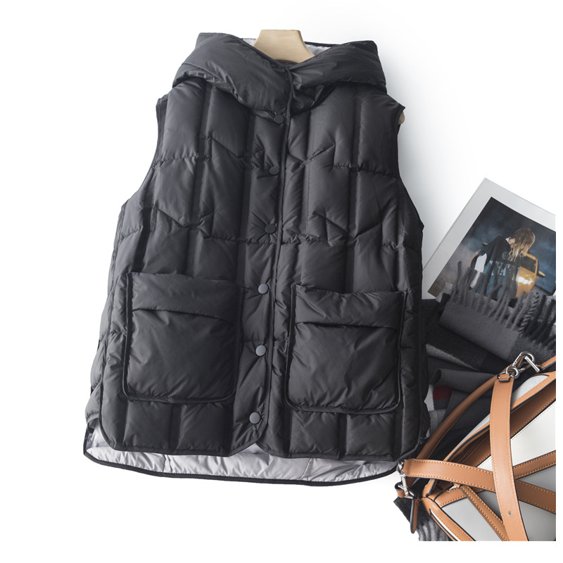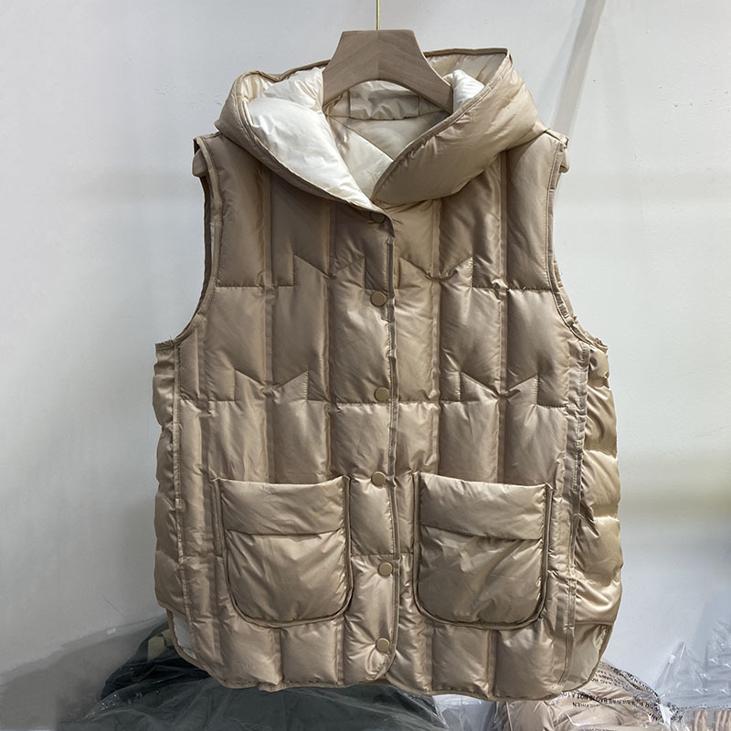 크로스 보더 가을과 겨울 새로운 경량 따뜻한 원활한 고무 후드 다운 조끼 여성용 민소매 조끼 트렌디 재킷