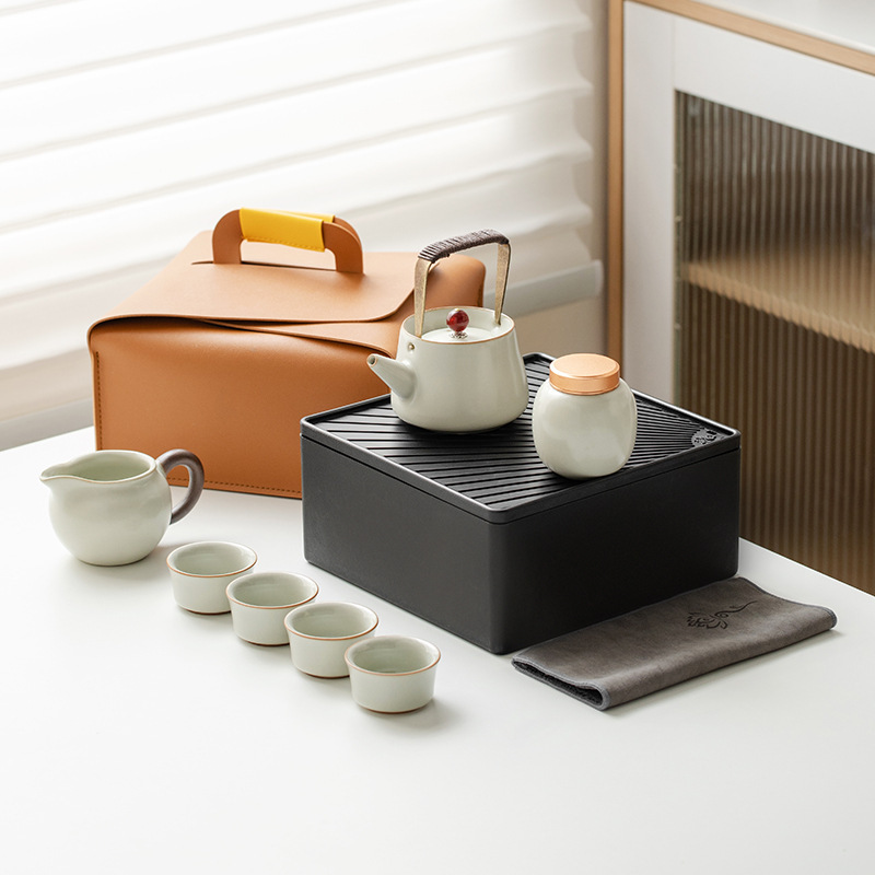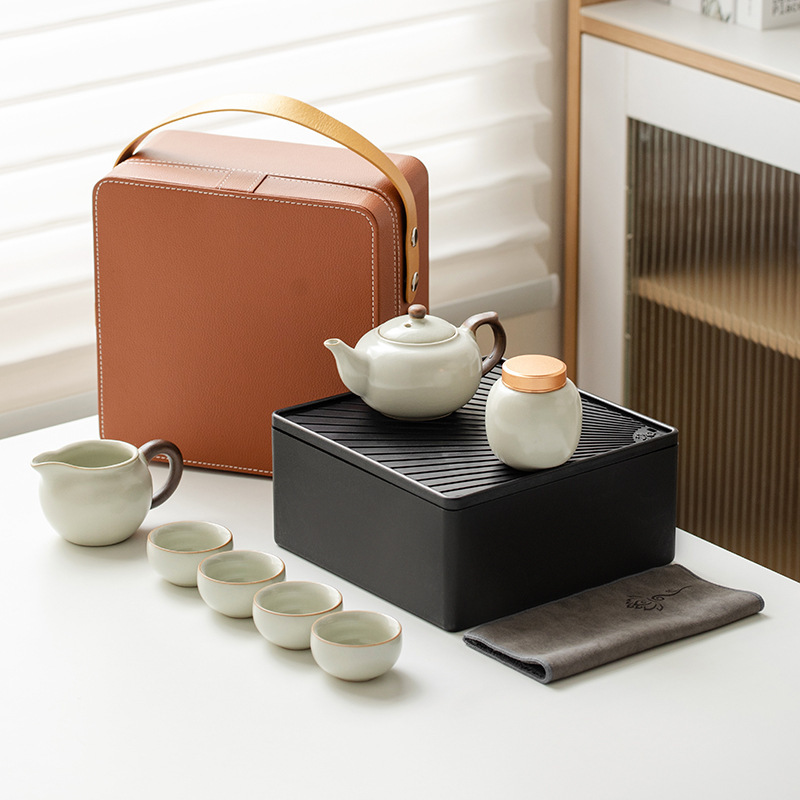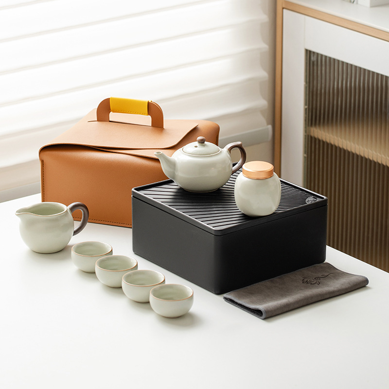 Ru Kiln 여행 세트 여행 차 세트 세트 티 트레이 휴대용 작은 차 세트 교사 선물 인쇄 로고