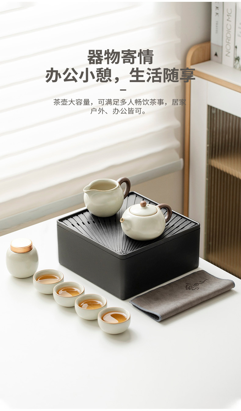 汝窑旅行套组旅行茶具套装带茶盘便携式小茶具送老师礼品印制logo