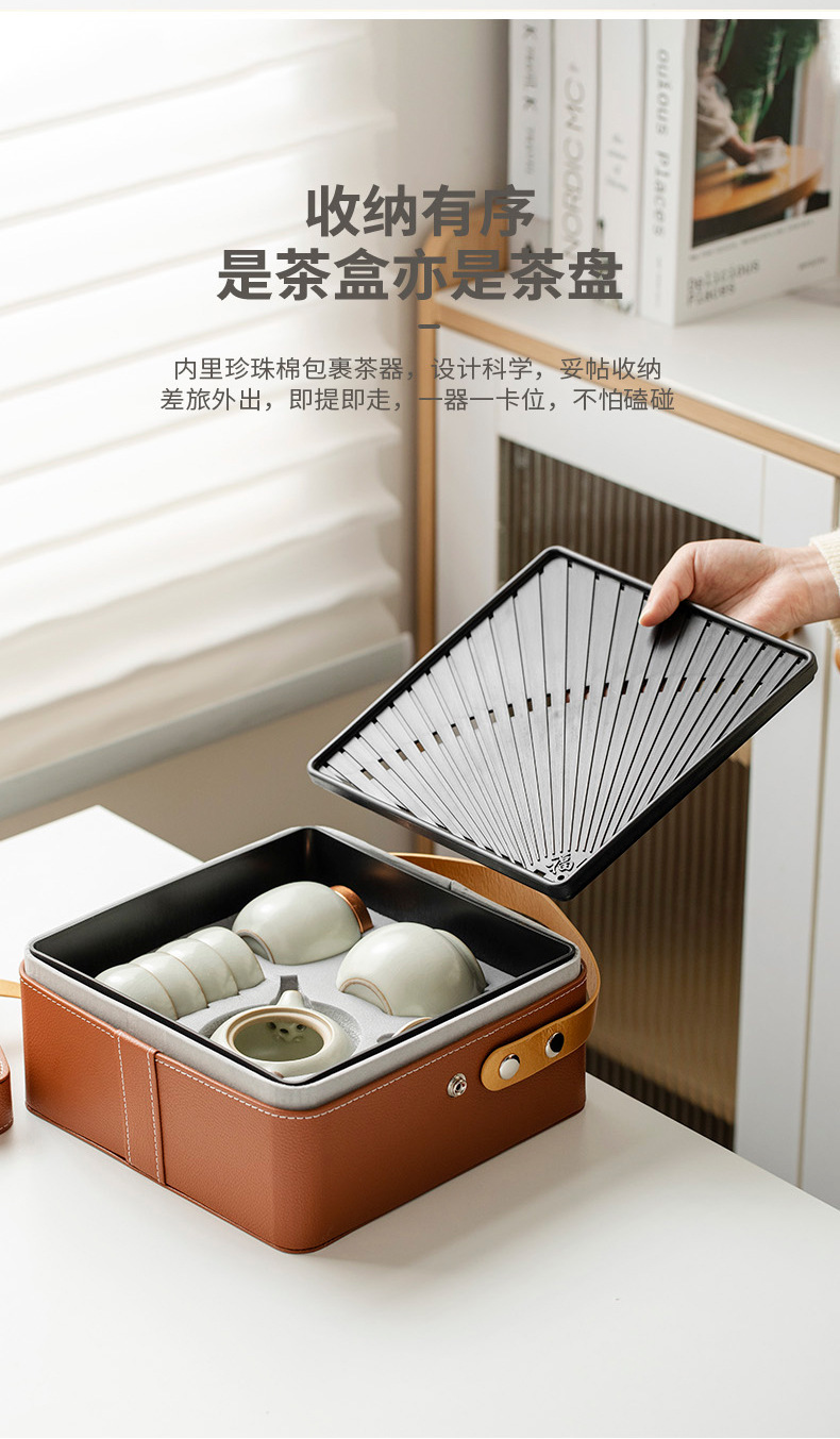 Ru Kiln 여행 세트 여행 차 세트 세트 티 트레이 휴대용 작은 차 세트 교사 선물 인쇄 로고스토어 가기