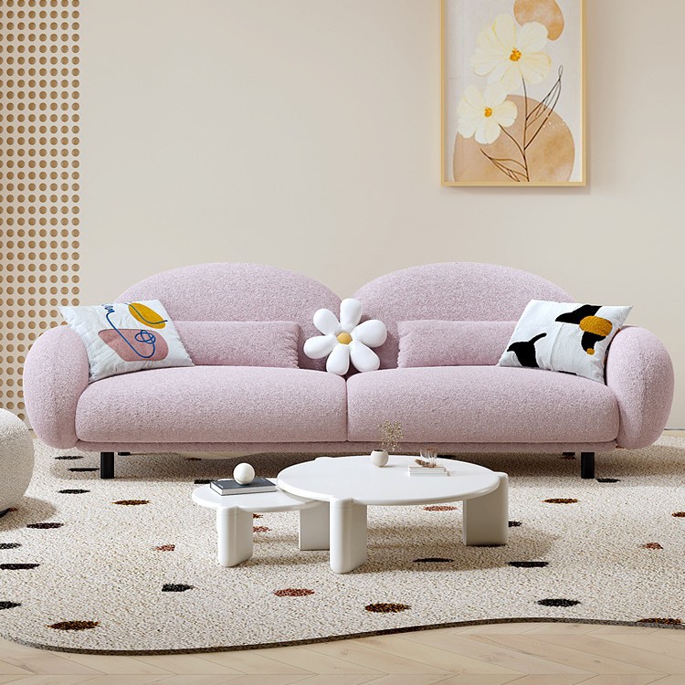 프렌치 크림 스타일 패브릭 소파 작은 아파트 현대적인 미니멀리스트 거실 3인용 직선형 인터넷 연예인 디자이너 소파스토어 가기