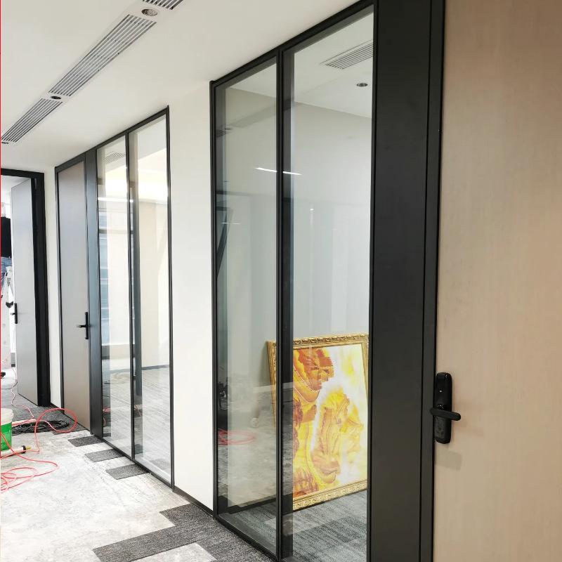 사무실 유리 파티션 벽 알루미늄 합금 스크린 파티션 이중 강화 유리 셔터 도어 및 창문 현대 미니멀리스트스토어 가기
