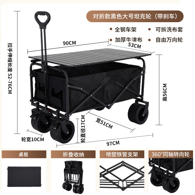 • 대형 10 인치 탱크 휠 블랙/더블 브레이크 + 접이식 테이블 보드
