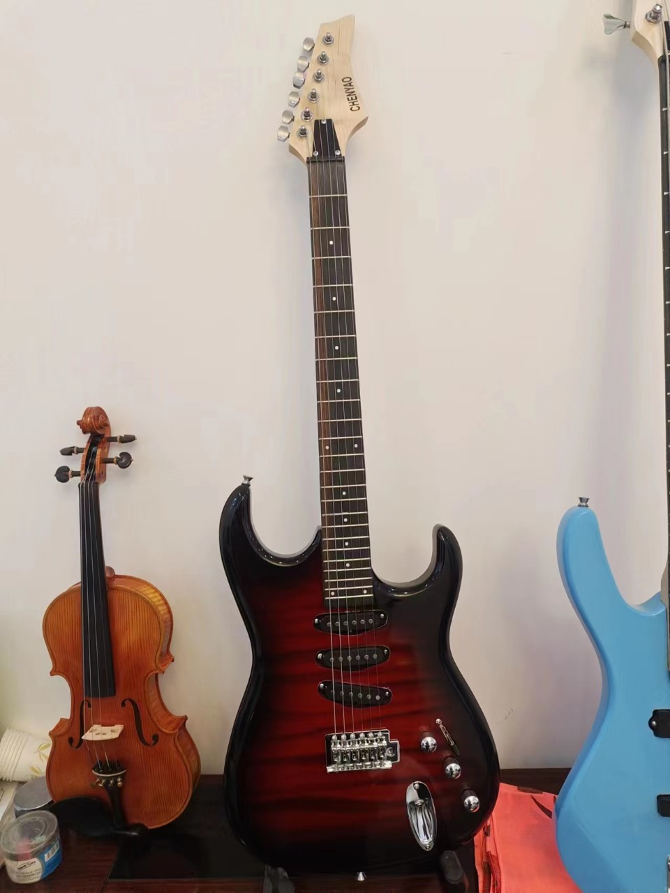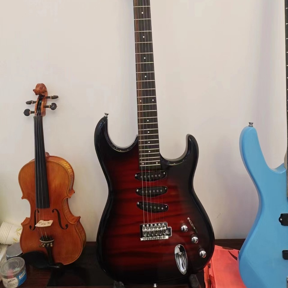 제조업체 타이거 패턴 오픈 일렉트릭 기타 미드 디렉터 24 프렛 화이트 구리 와이어 기술 우드 프렛보드 포크 30inch 기타