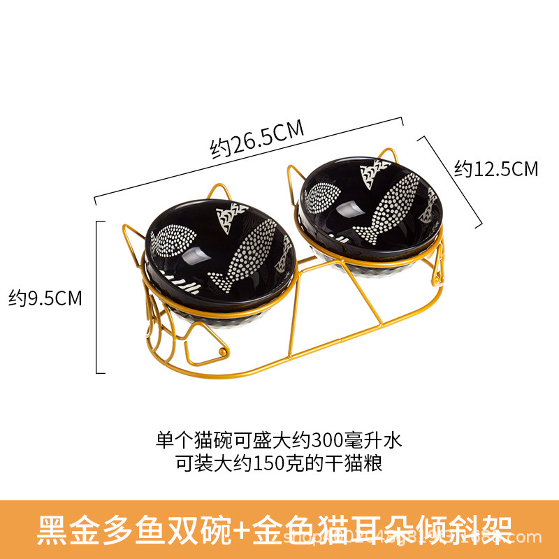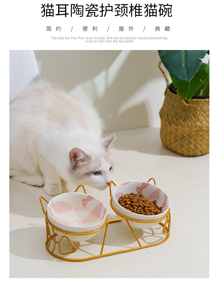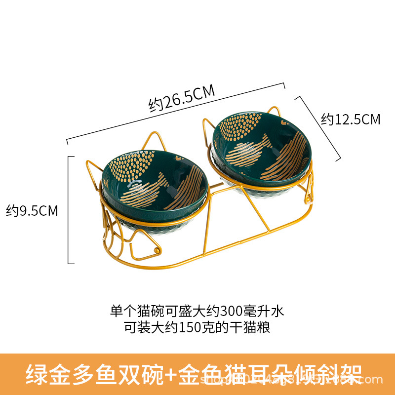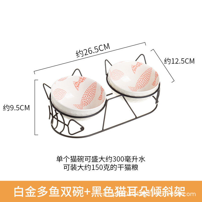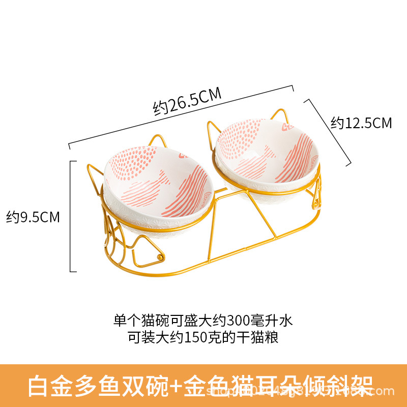 애완 동물 고양이 그릇 세라믹 이중 그릇 보호 경추 고정 기울기 전복 방지 고양이와 개 음식 그릇 밥그릇 고양이 음식 그릇 물그릇