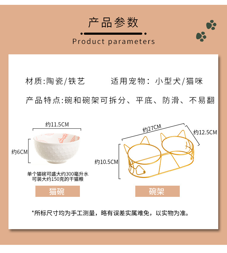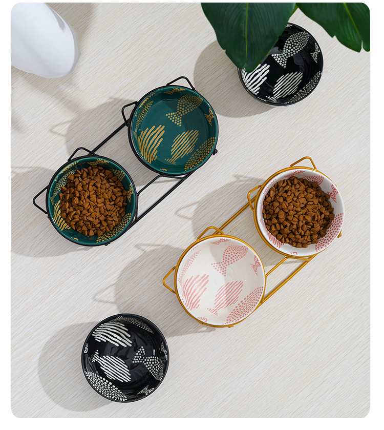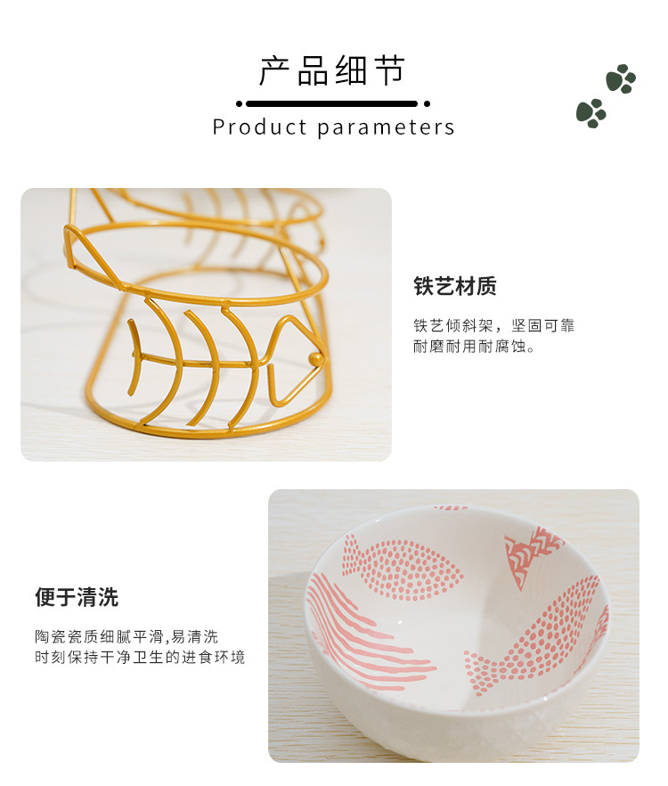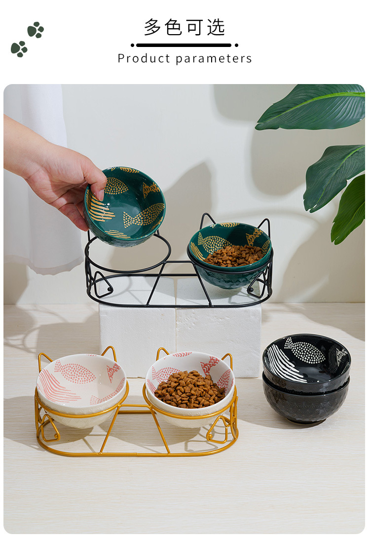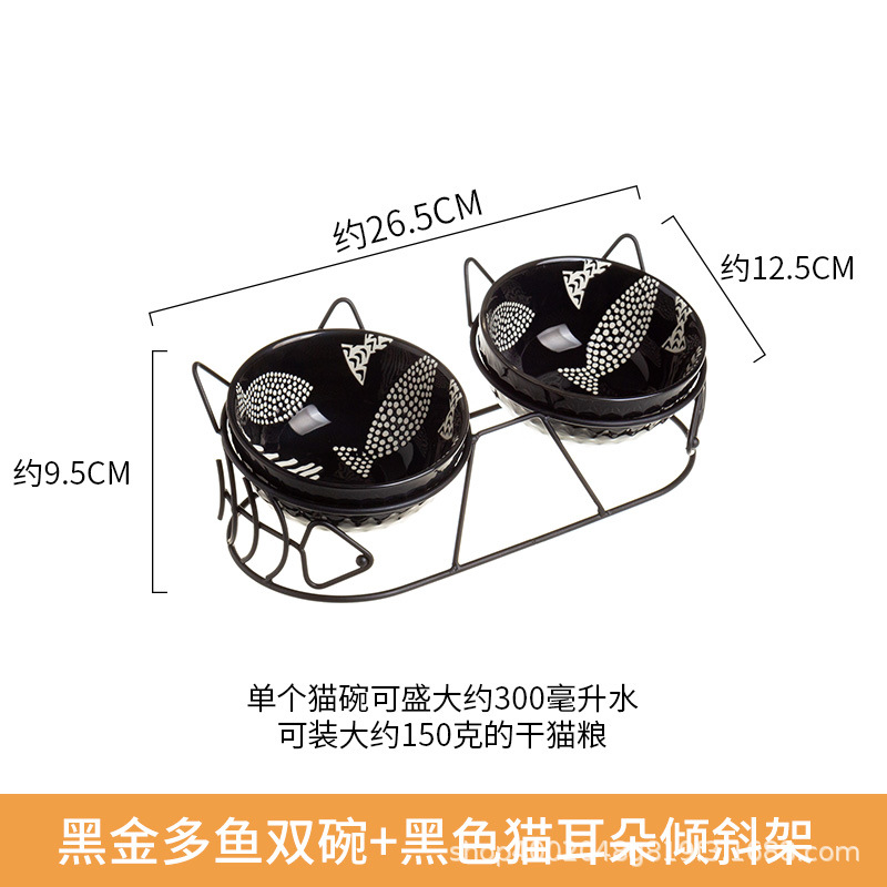 애완 동물 고양이 그릇 세라믹 이중 그릇 보호 경추 고정 기울기 전복 방지 고양이와 개 음식 그릇 밥그릇 고양이 음식 그릇 물그릇