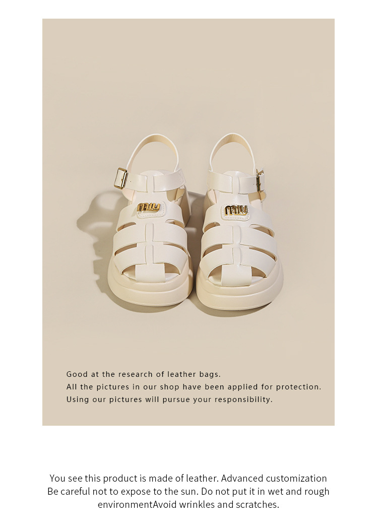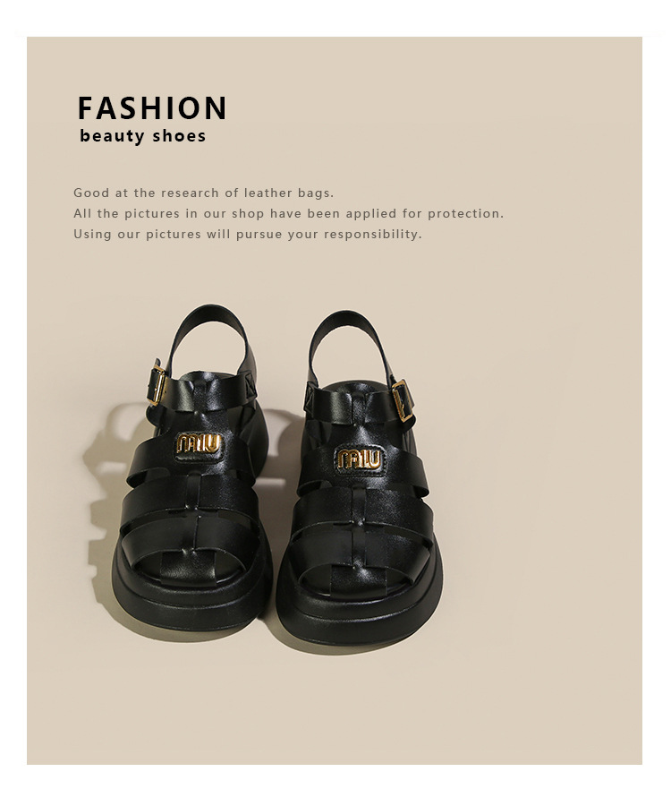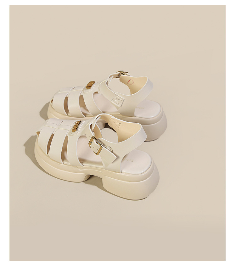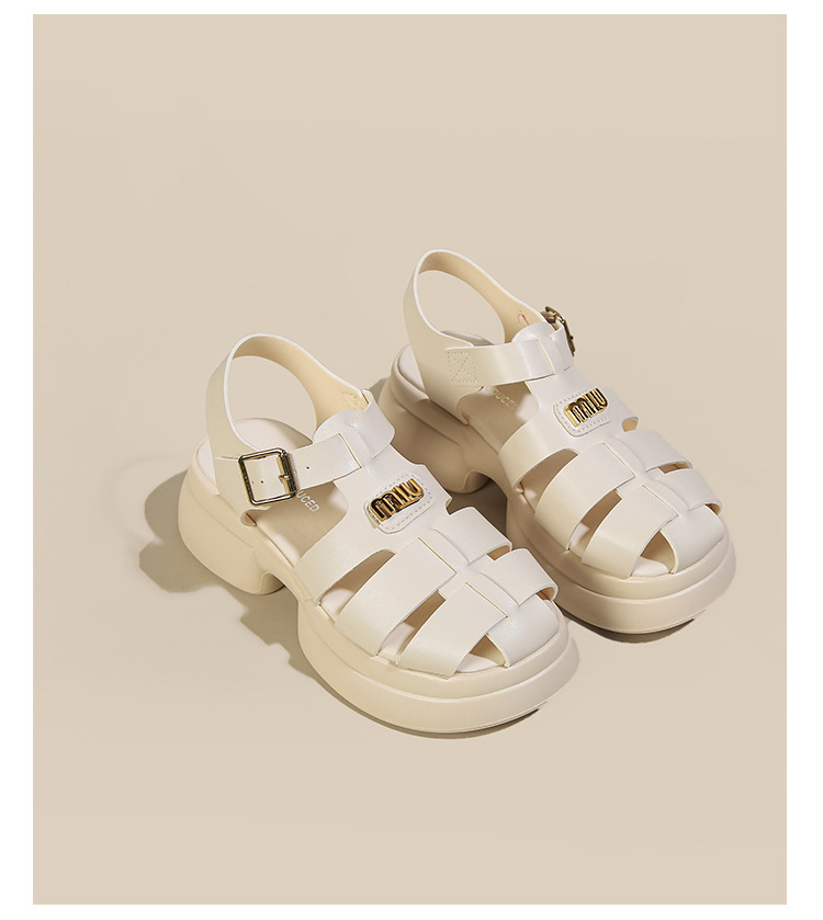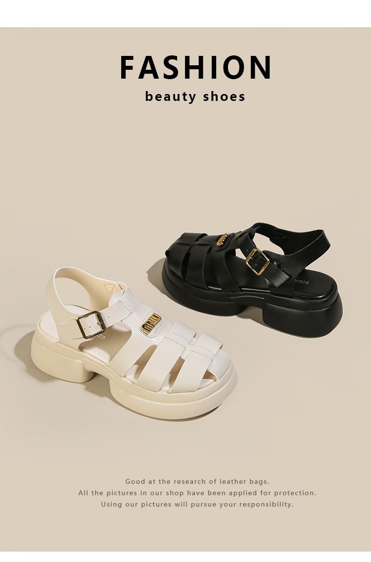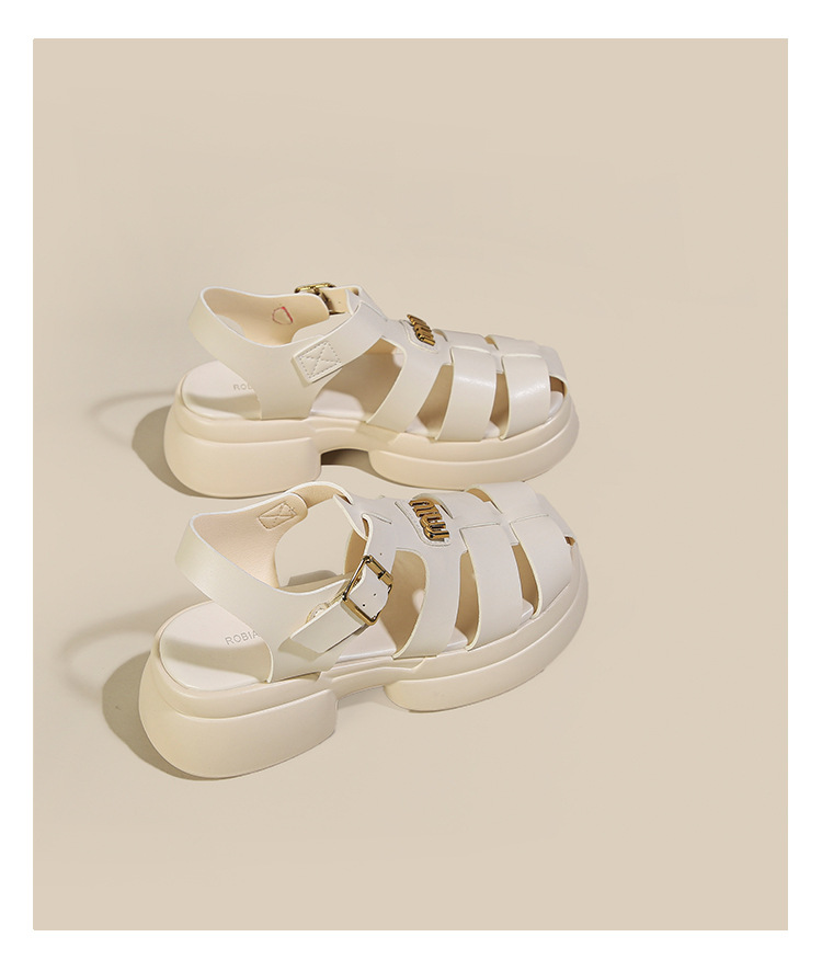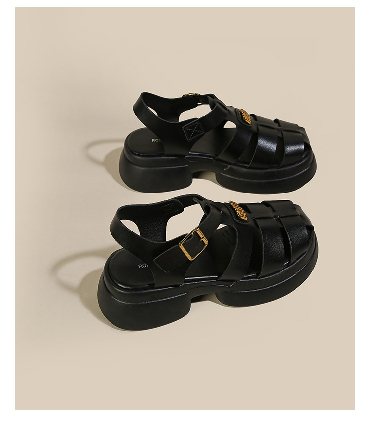 Baotou 로마 샌들 여성용 2023 여름 새 짠 돼지 케이지 신발 두꺼운 단독 버클 컷 아웃 비치 신발