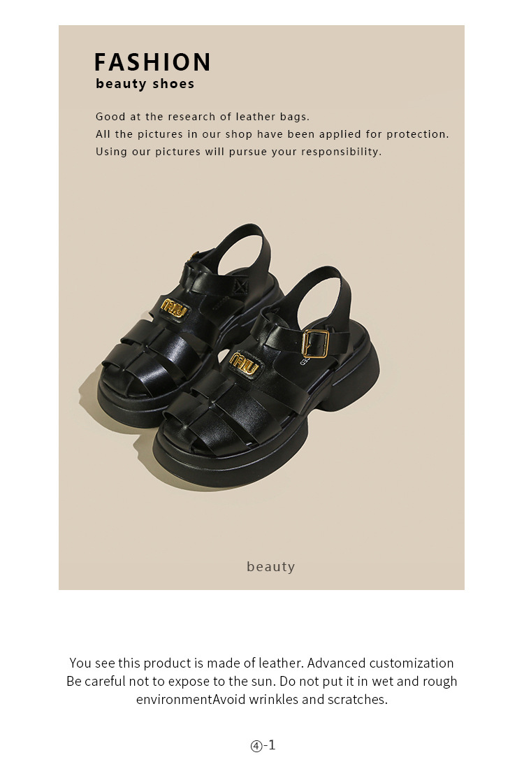 Baotou 로마 샌들 여성용 2023 여름 새 짠 돼지 케이지 신발 두꺼운 단독 버클 컷 아웃 비치 신발스토어 가기