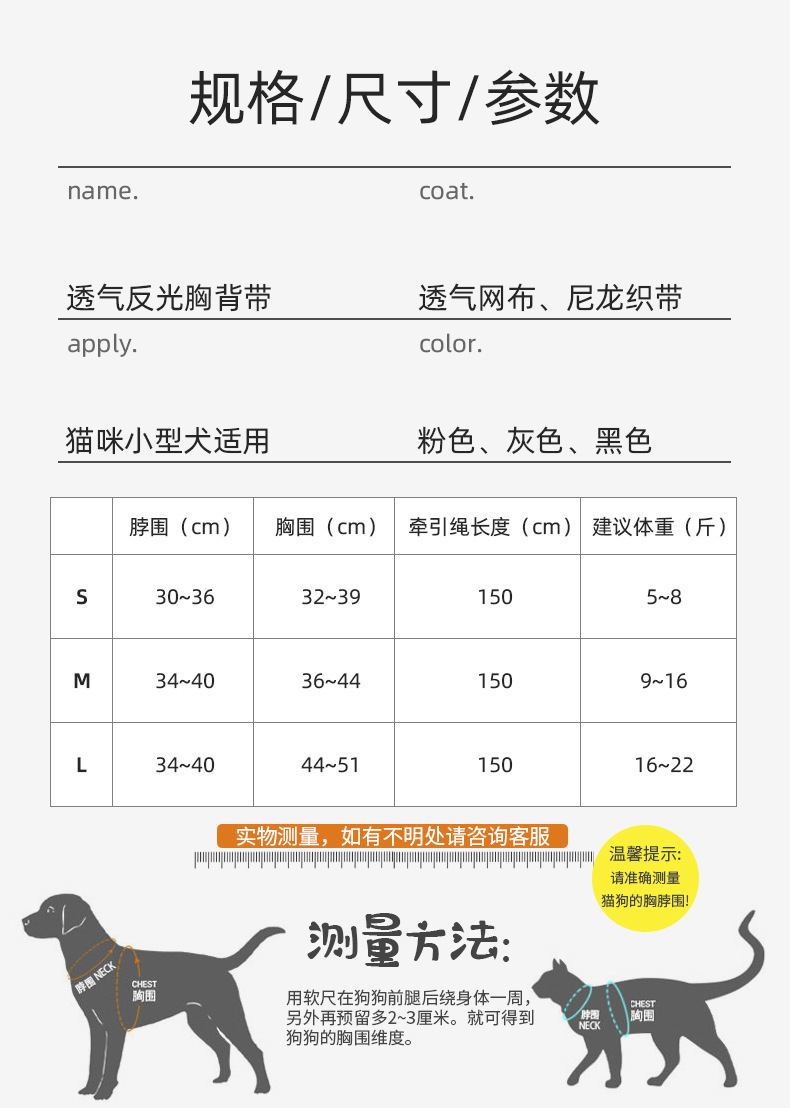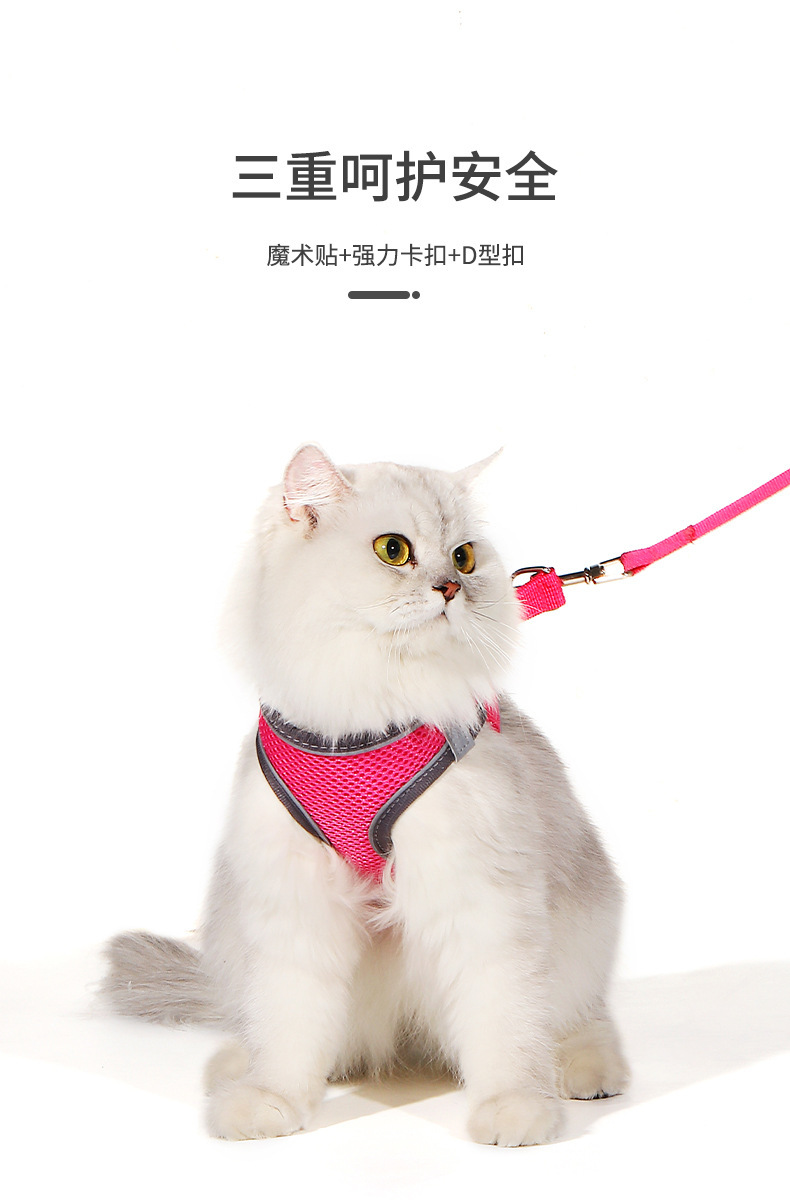 고양이 견인 로프 고양이 로프 조끼 스타일 반사 가슴 스트랩 브레이크 방지 애완 동물 외출 견인 로프 고양이 워킹 로프