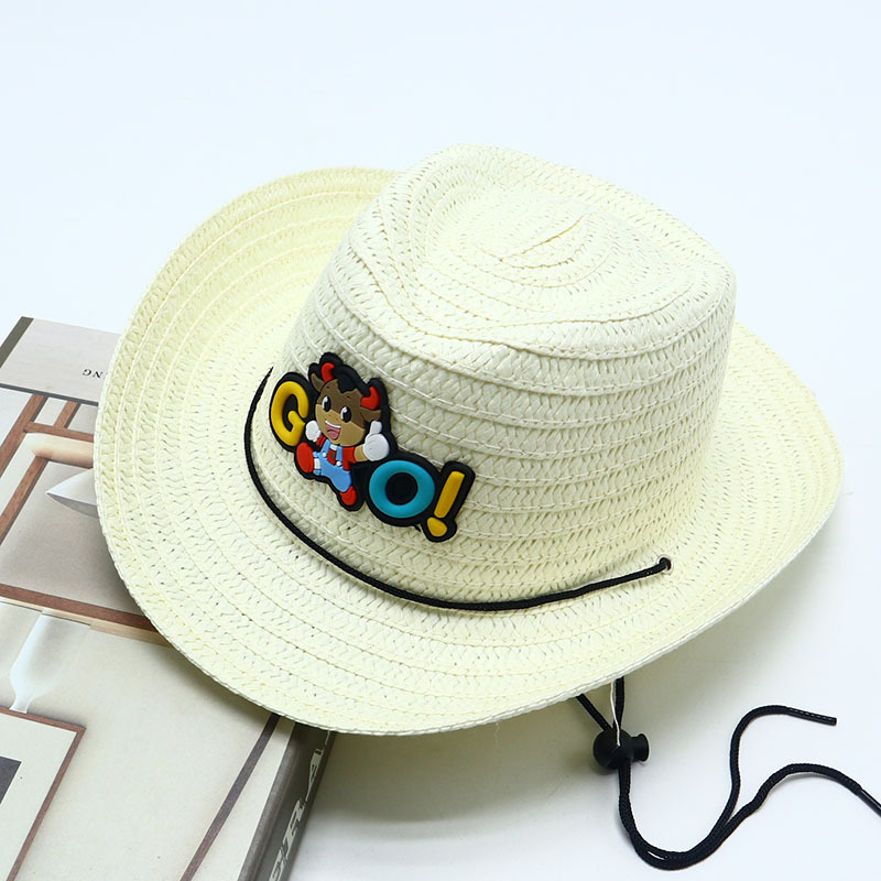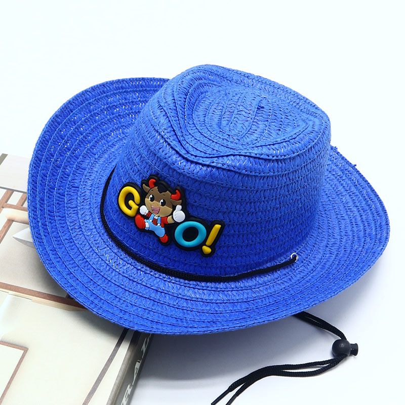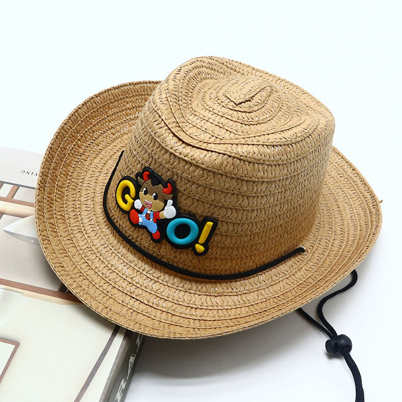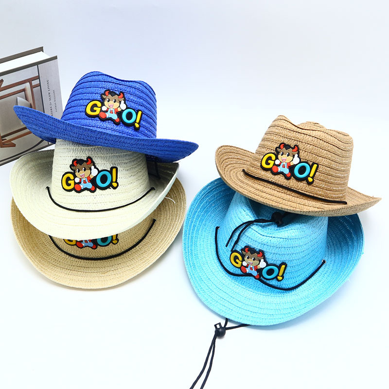 새로운 어린이 재즈 모자 야외 그늘 밀짚 모자 카우보이 모자 소년 만화 모자 아기 여름 모자